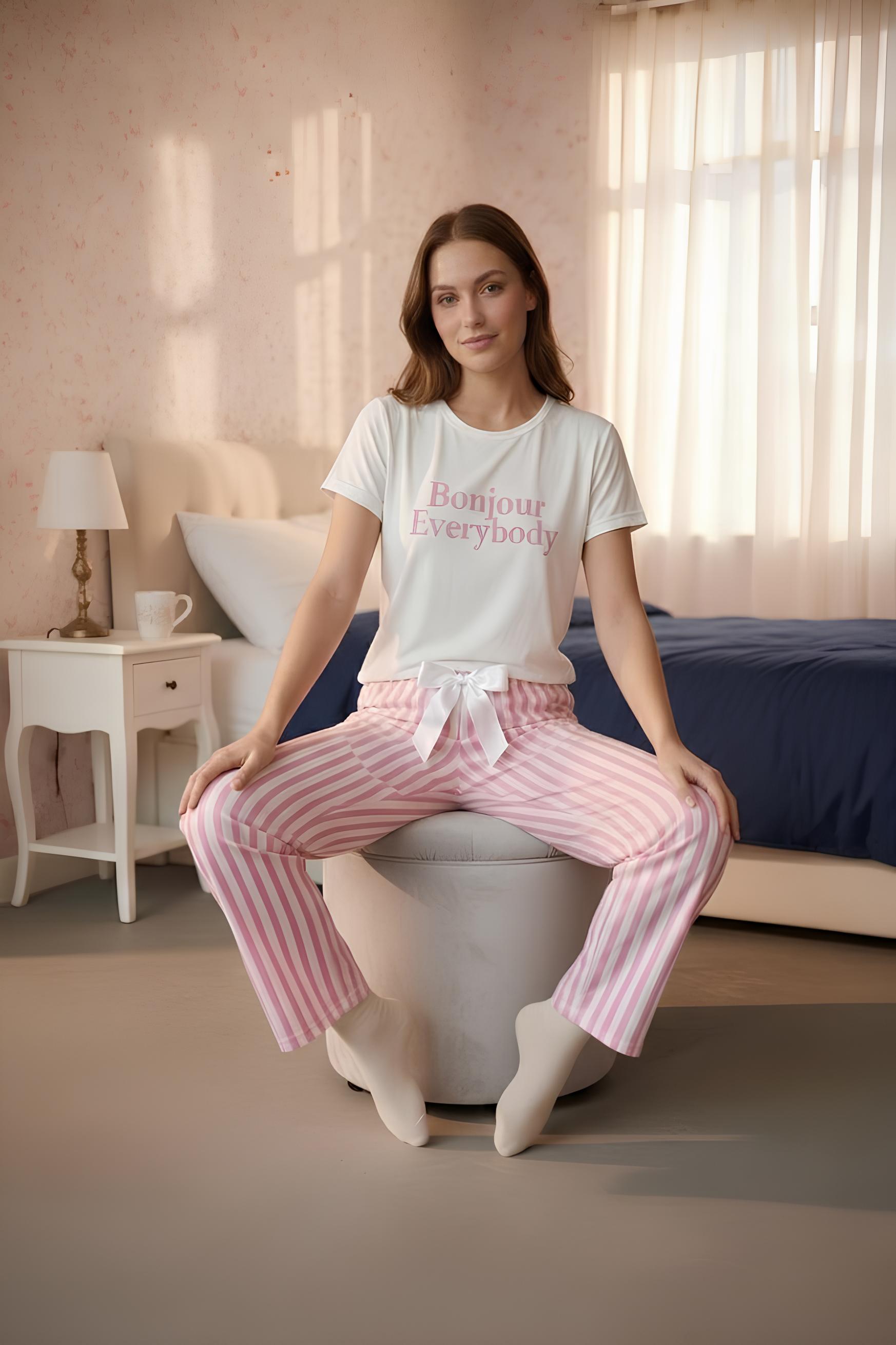 Bonjour Baskılı Milan Pijama Takımı Beyaz - 101-Beyaz