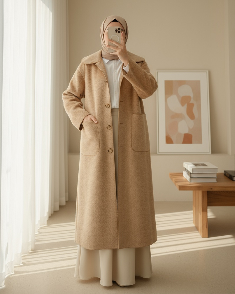Boydan Düğmeli Cepli Kaban -Vizon-Vizon
