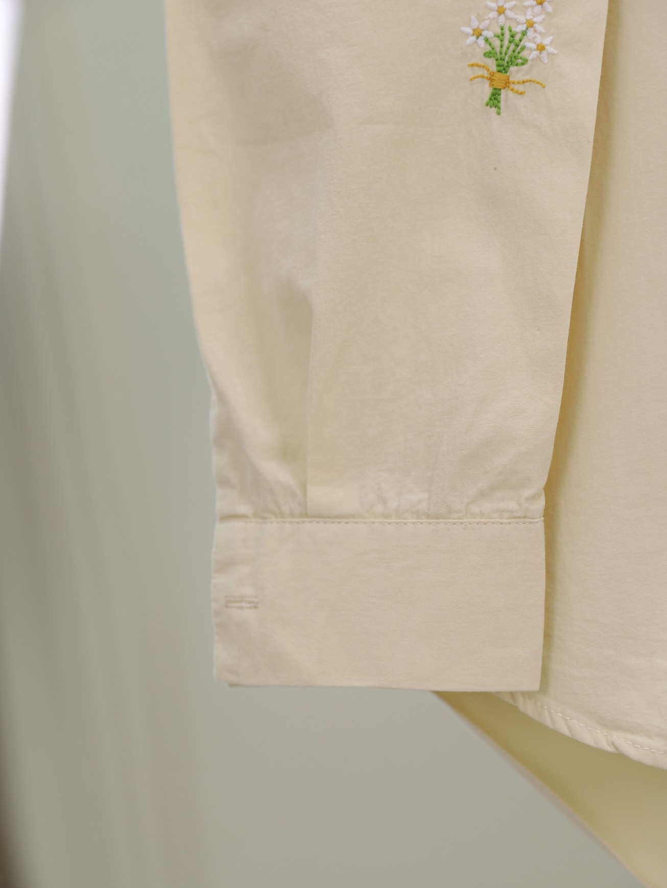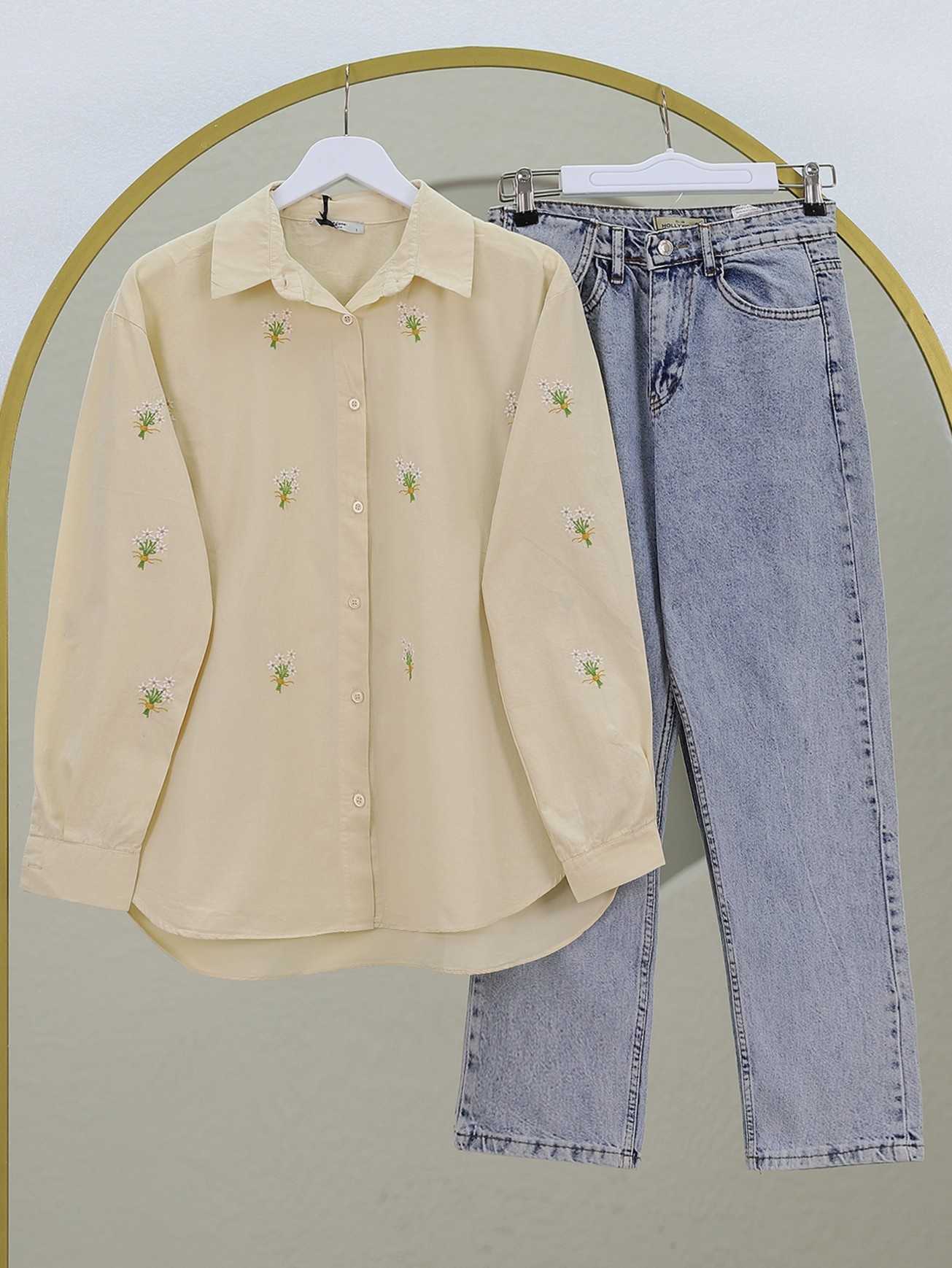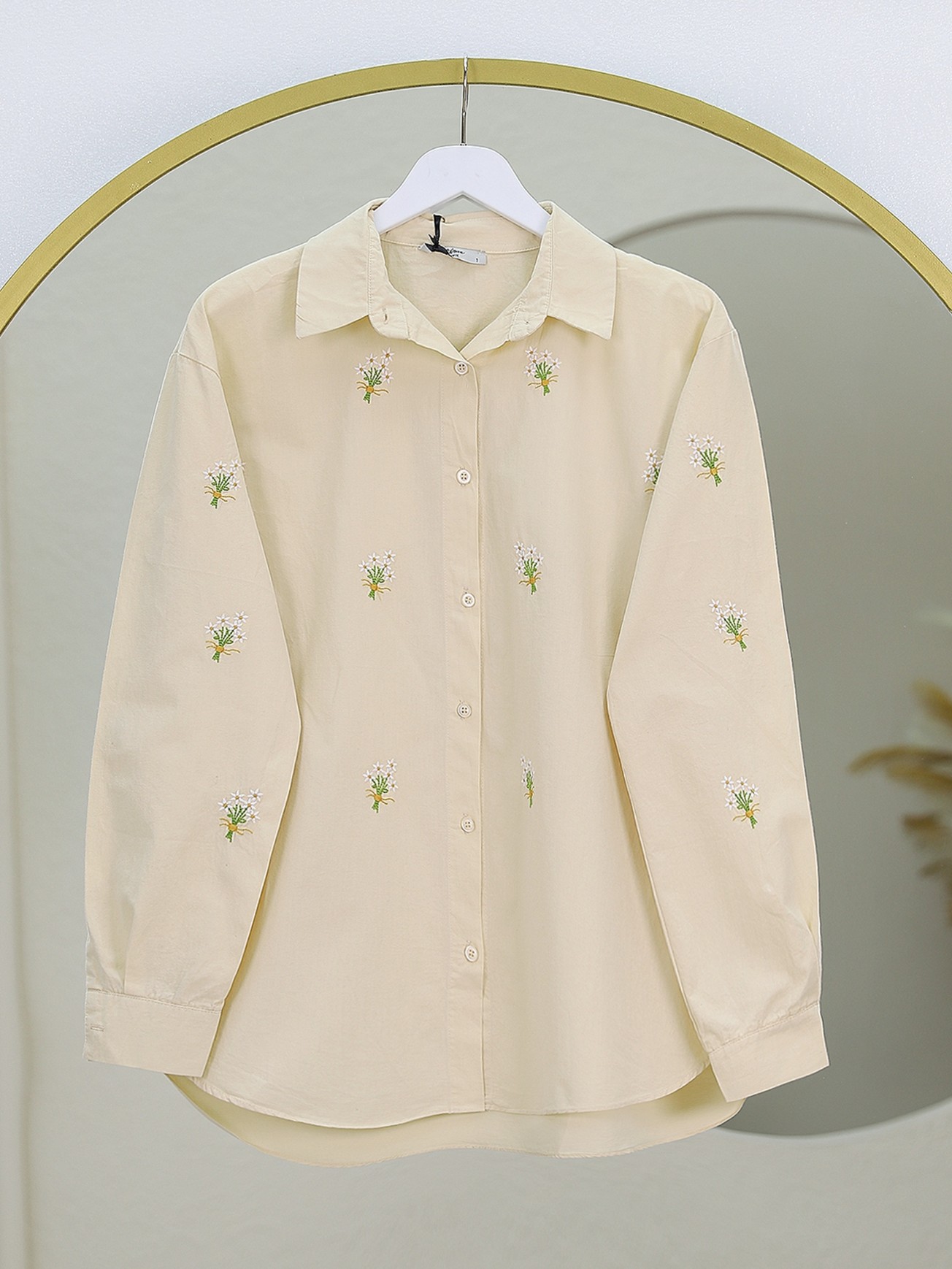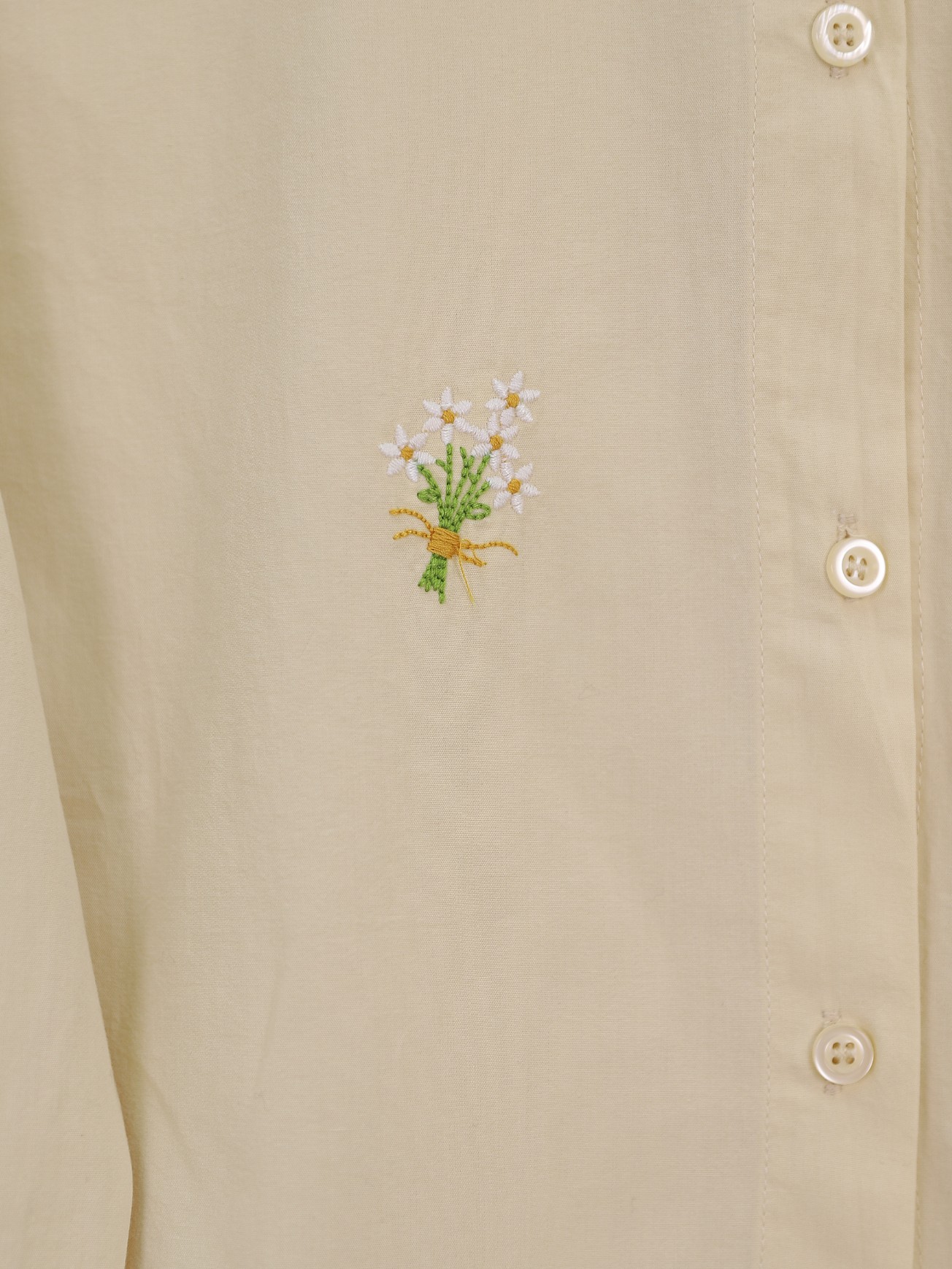 Buket Çiçek Detaylı Arkası Uzun Gömlek -Bej-Bej