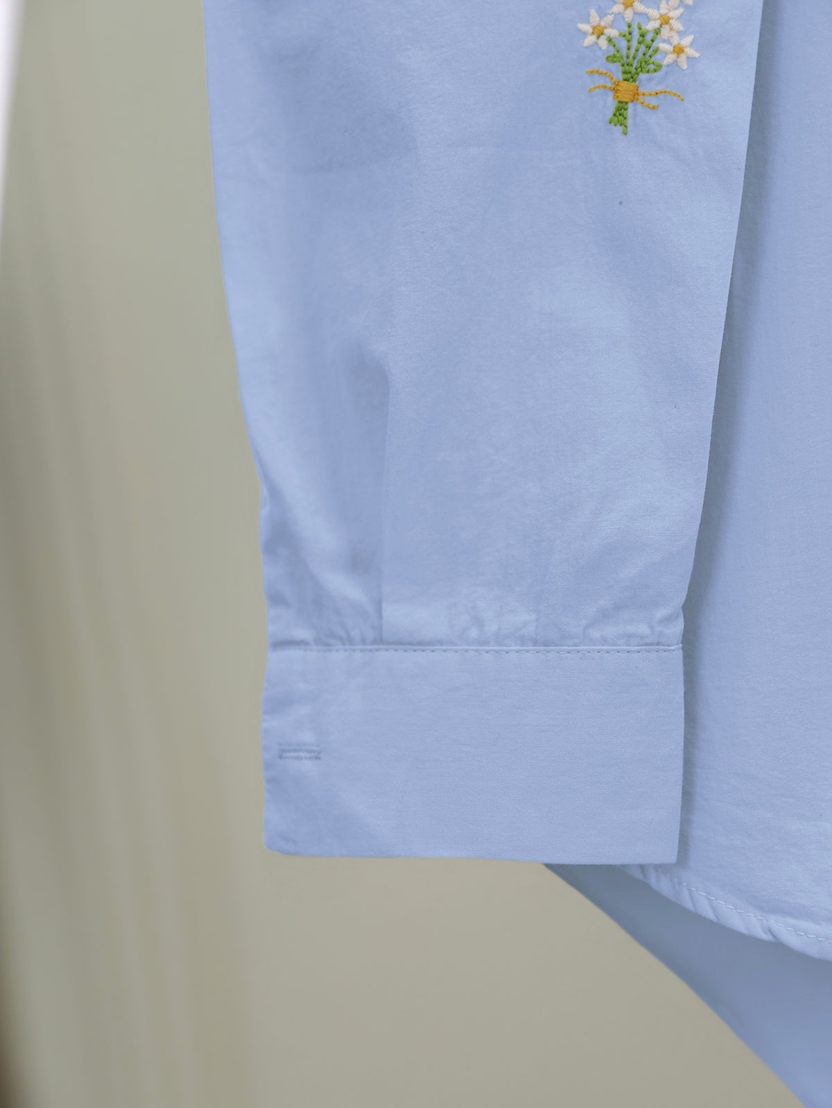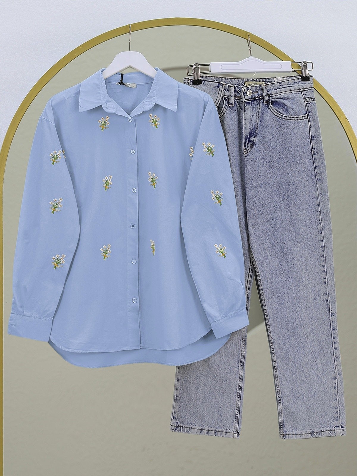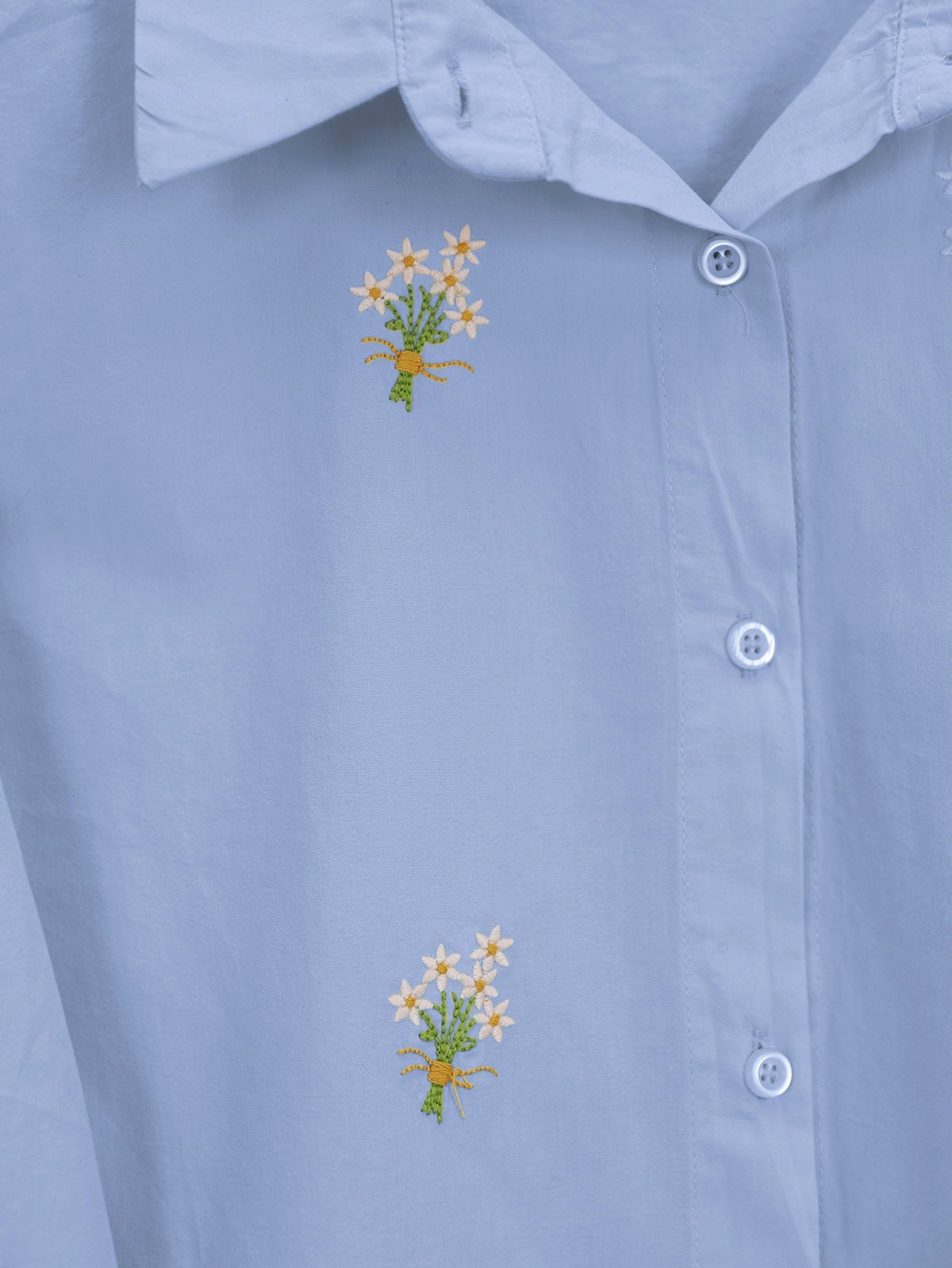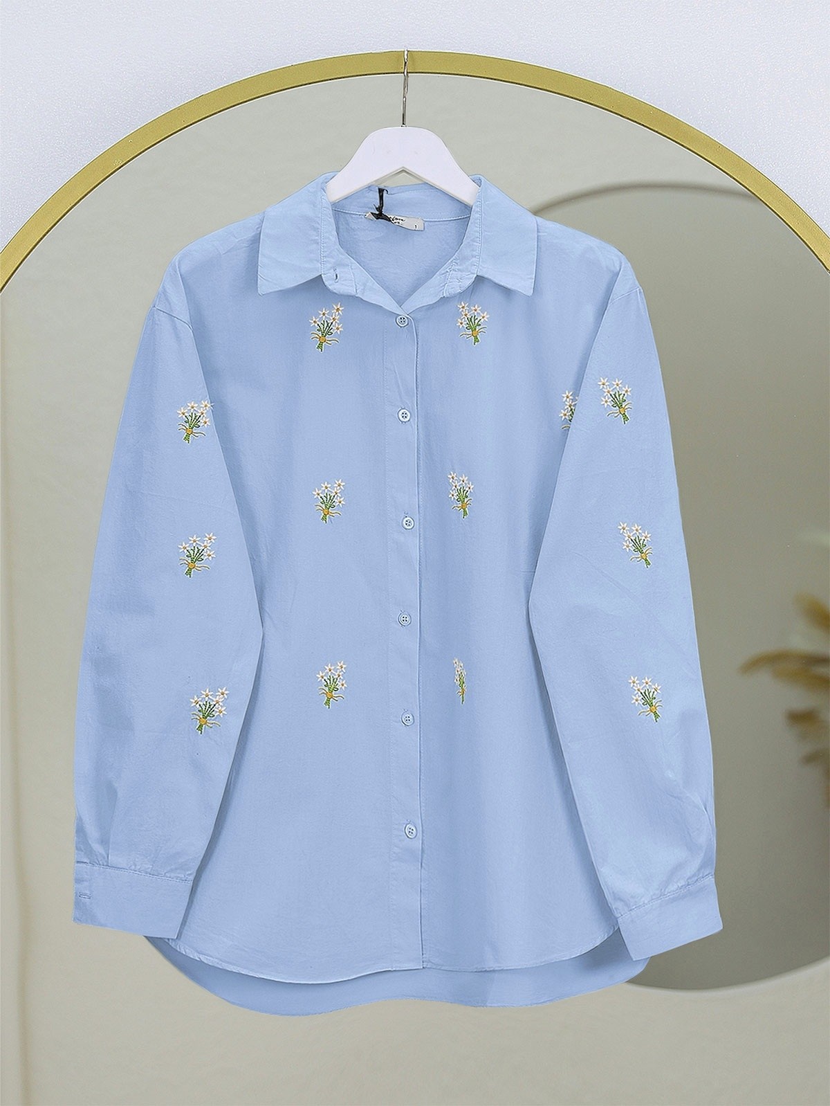Buket Çiçek Detaylı Arkası Uzun Gömlek -Mavi-Mavi