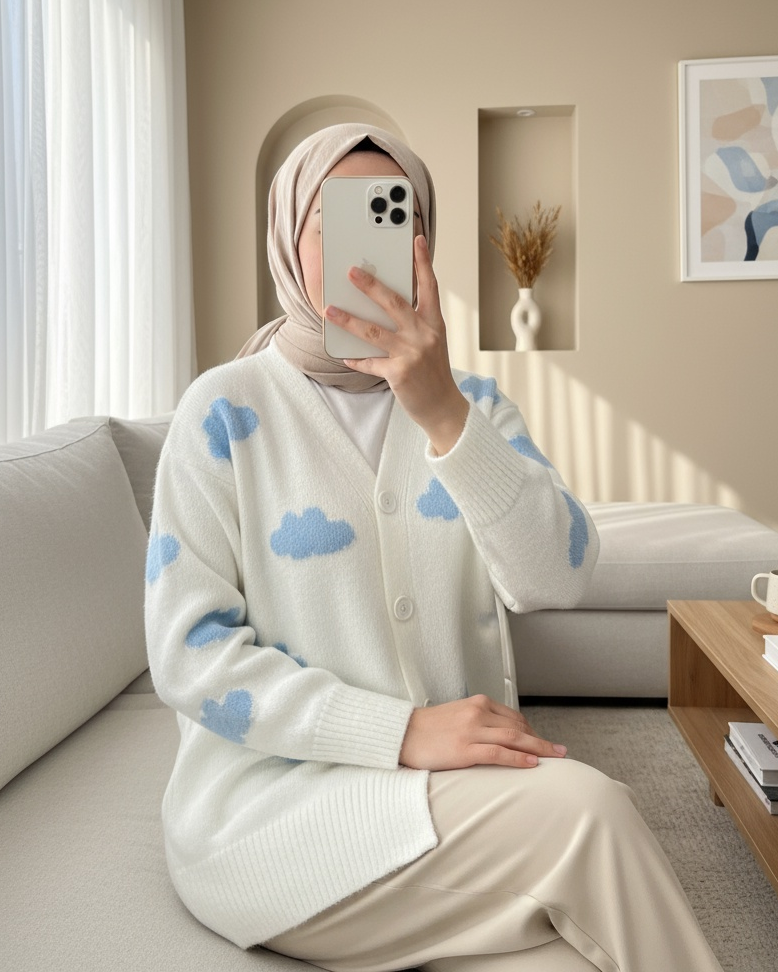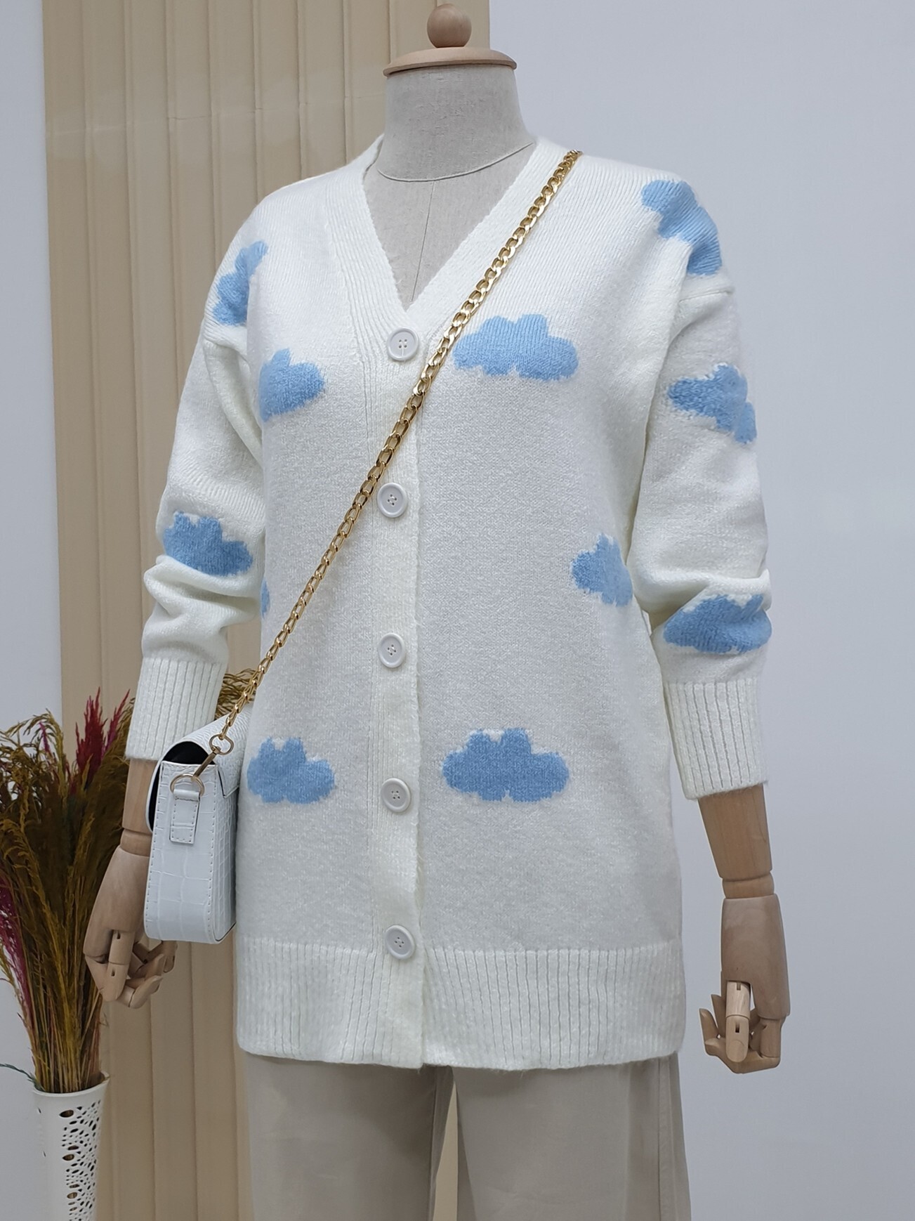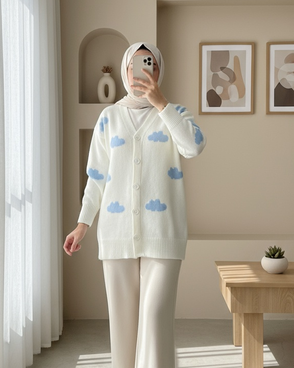 Bulutlu Düğmeli Hırka -Ekru-Ekru
