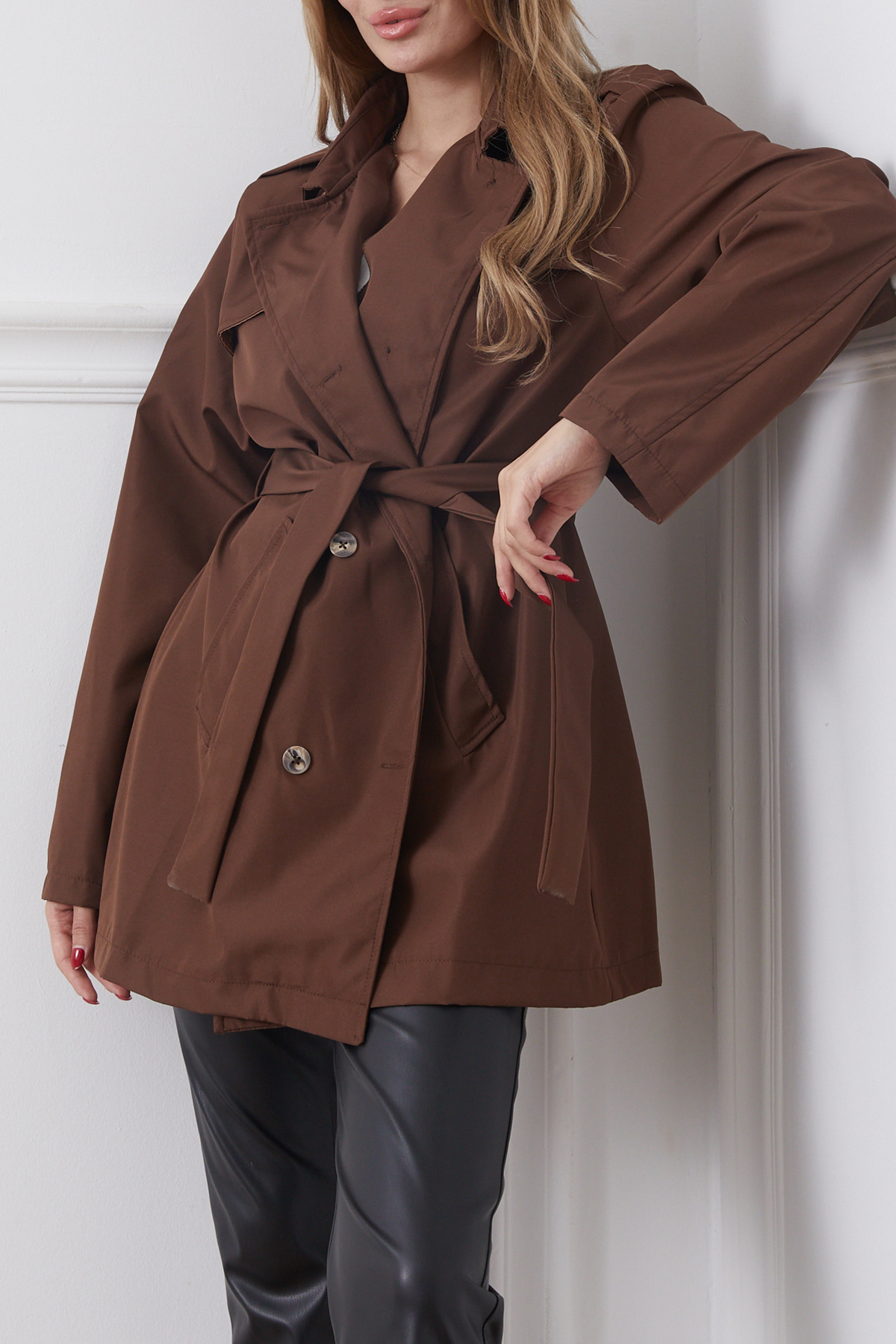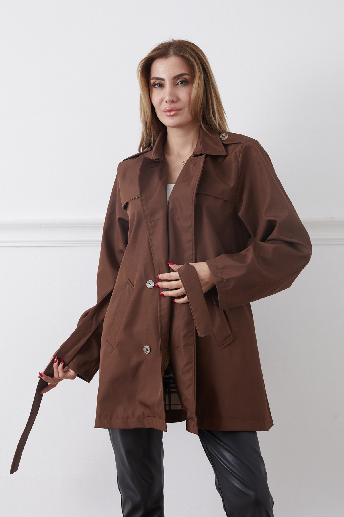 Büyük Beden Beli Kuşaklı Düğmeli Trençkot-Kahve