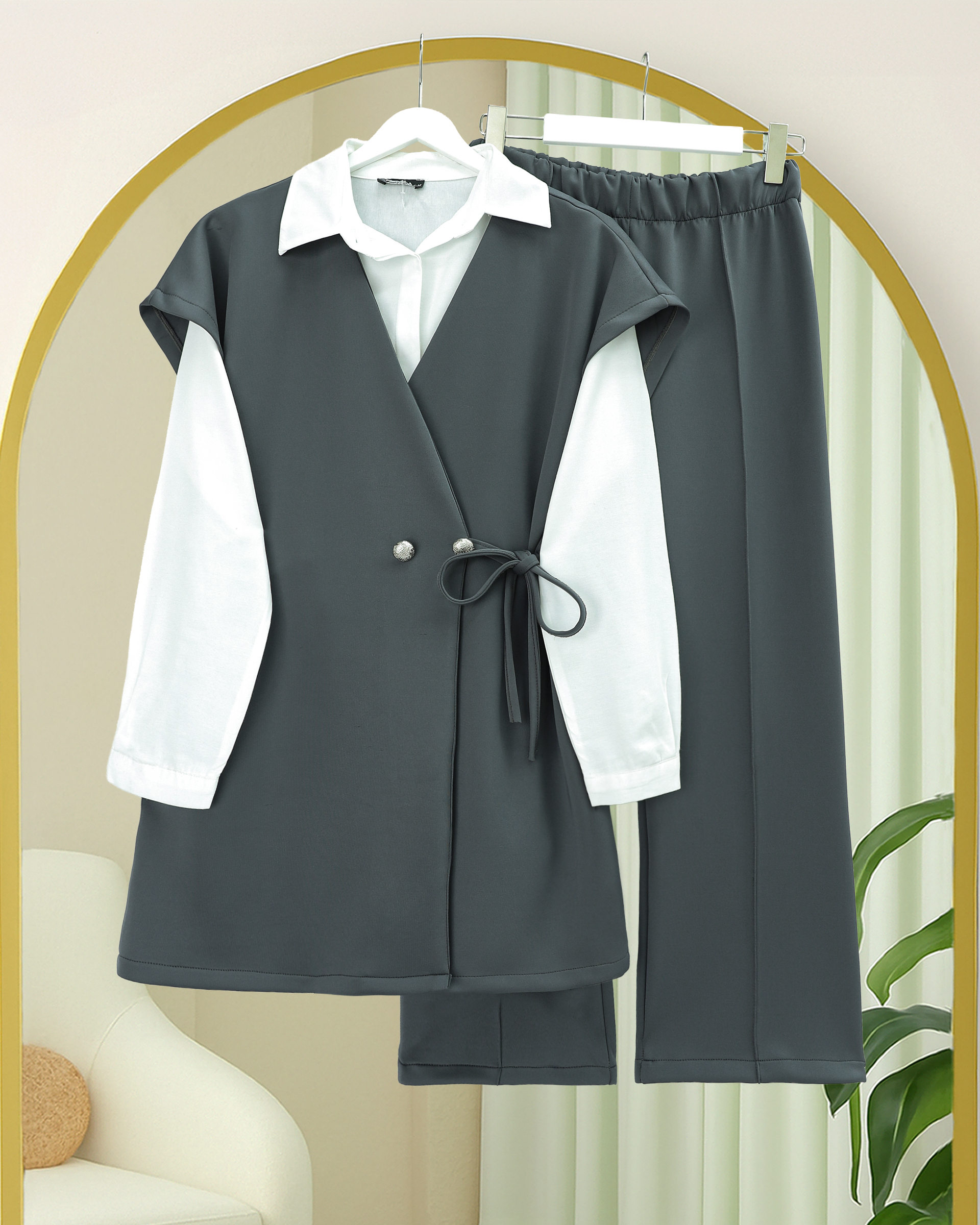 Çapraz Bağlamalı Kısa Kol Pantolonlu Scuba Takım -Füme-Füme