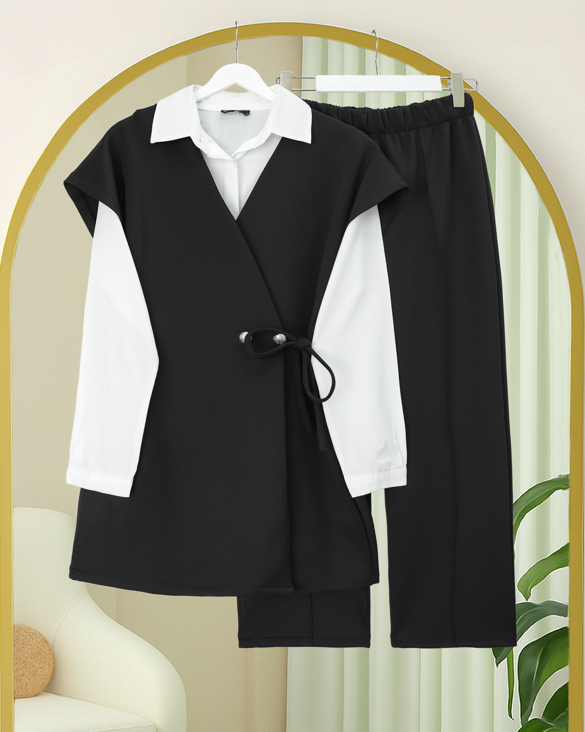 Çapraz Bağlamalı Kısa Kol Pantolonlu Scuba Takım -Siyah-siyah