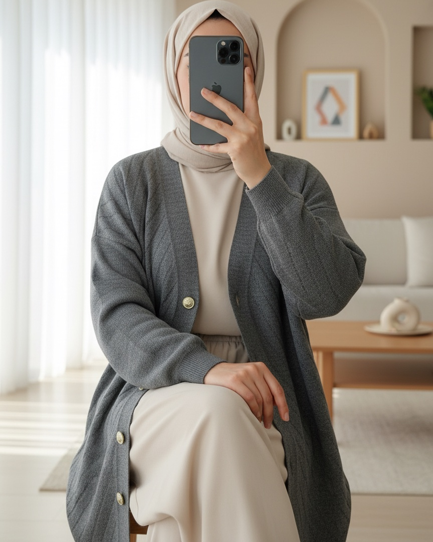 Çapraz Çizgili Broş Düğmeli Triko Hırka -Füme-Füme