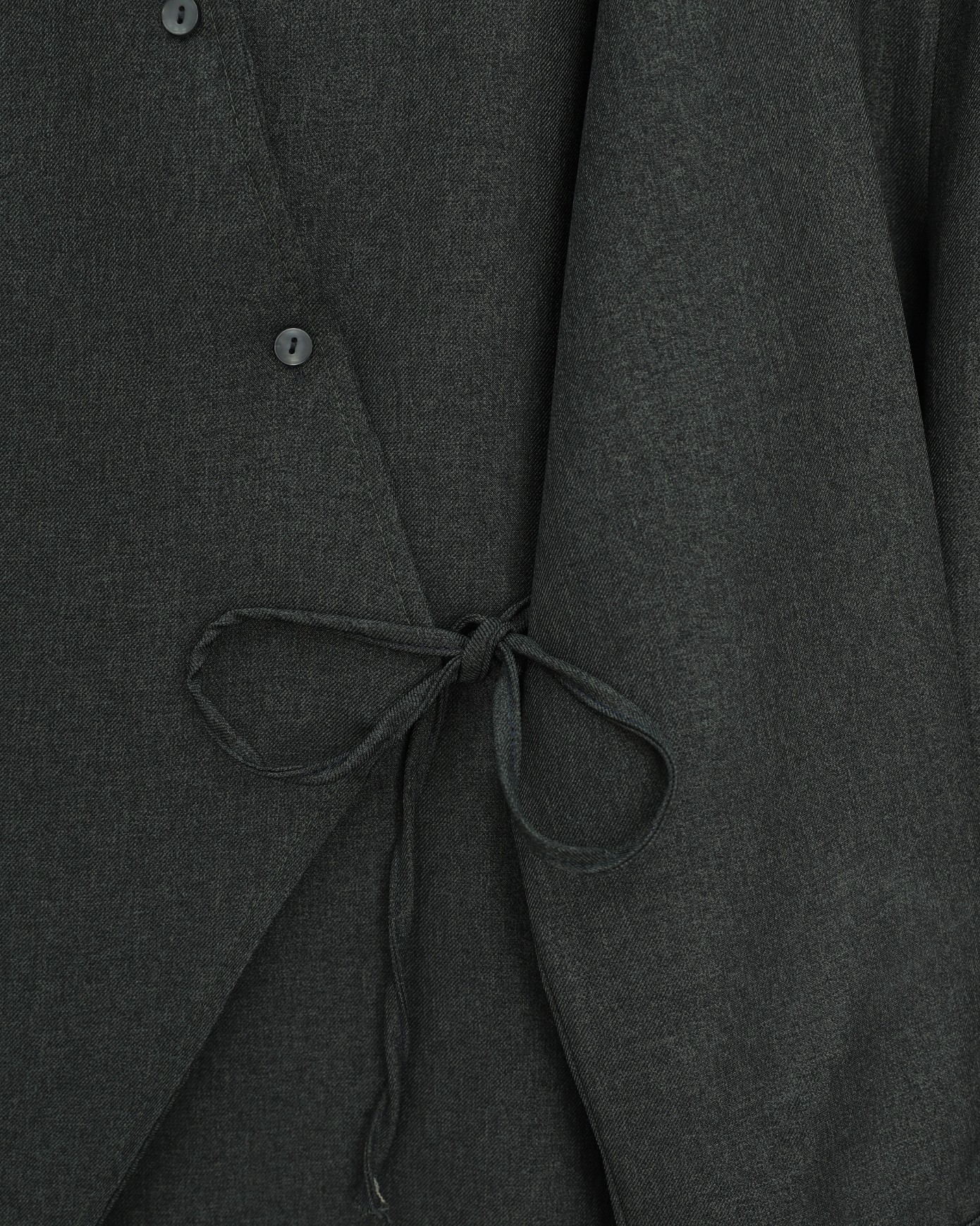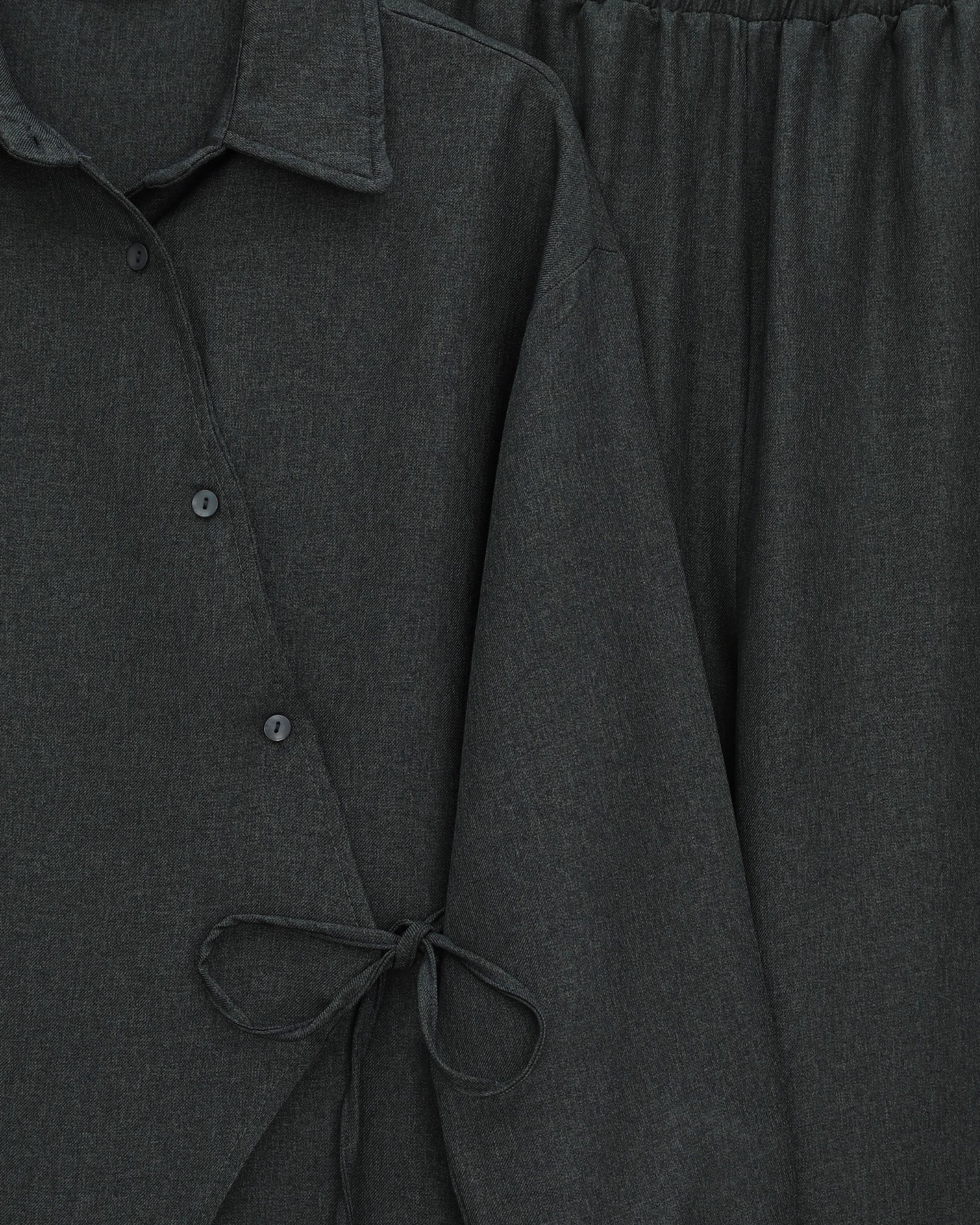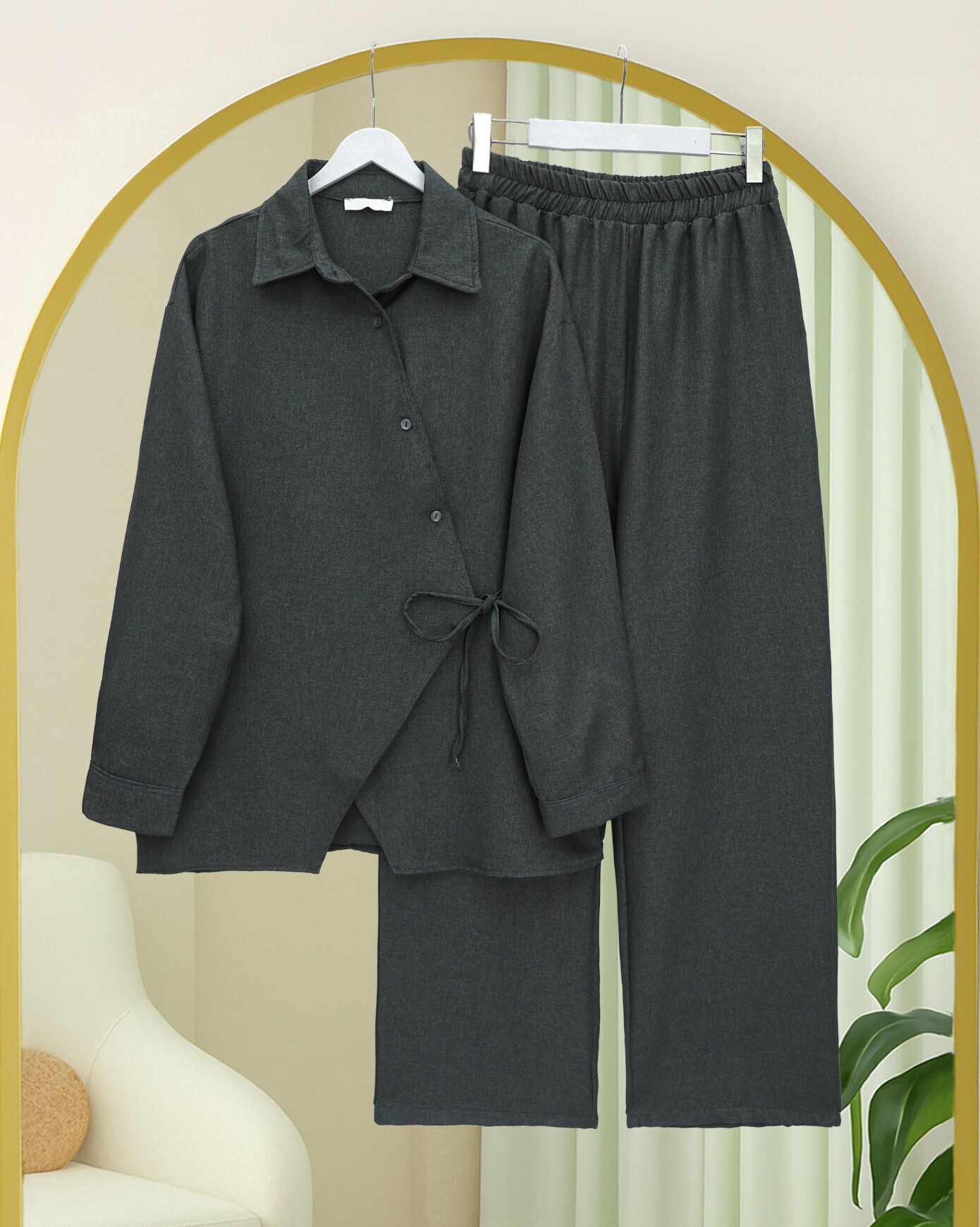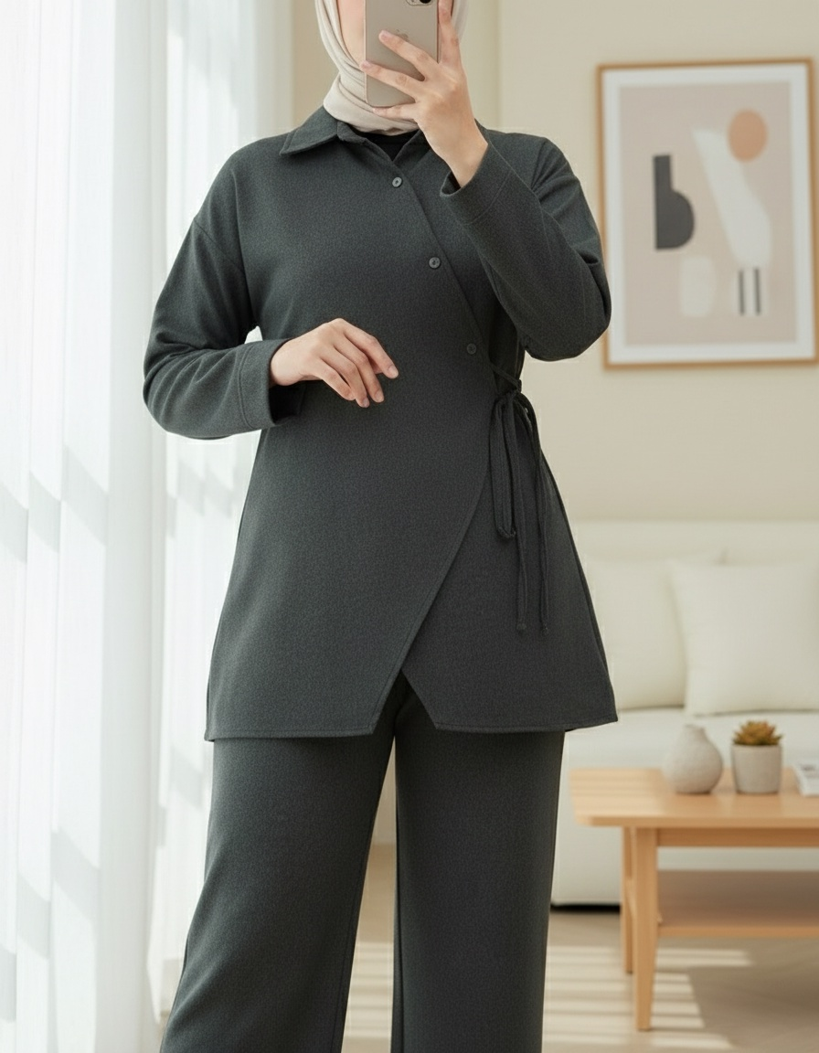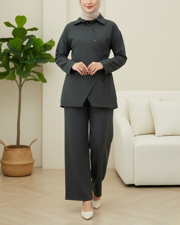 Çapraz Düğmeli Yandan Bağlamalı Yün Efekt Takım -Antrasit-Antrasit