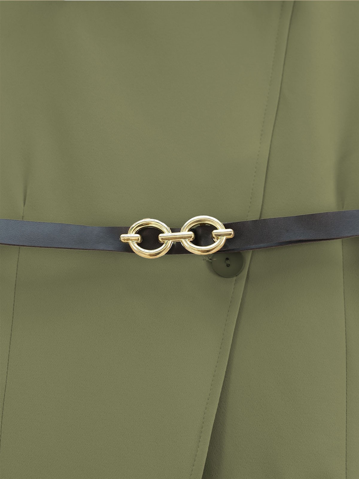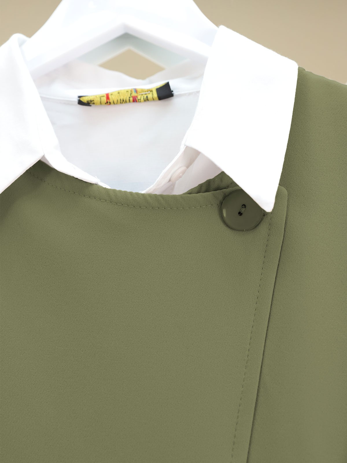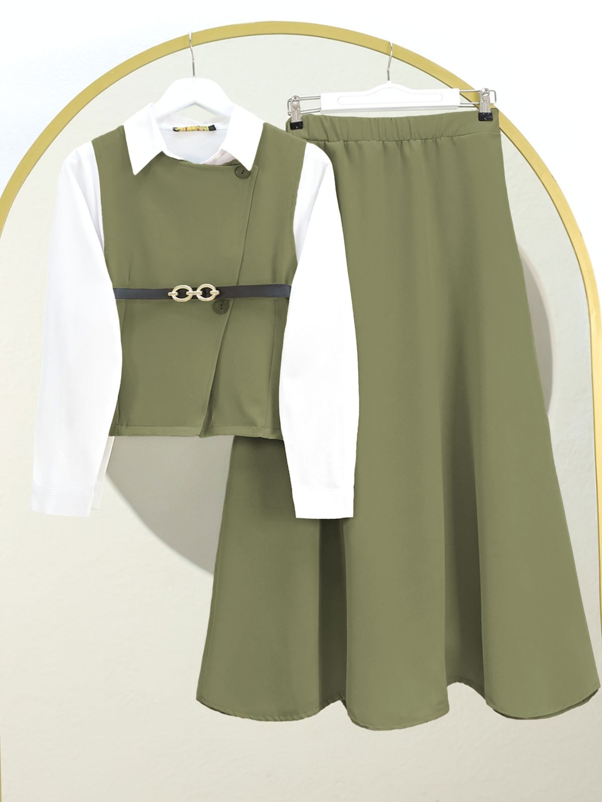 Çapraz Düğmeli Yelek Etek İkili Takım -Haki-Haki