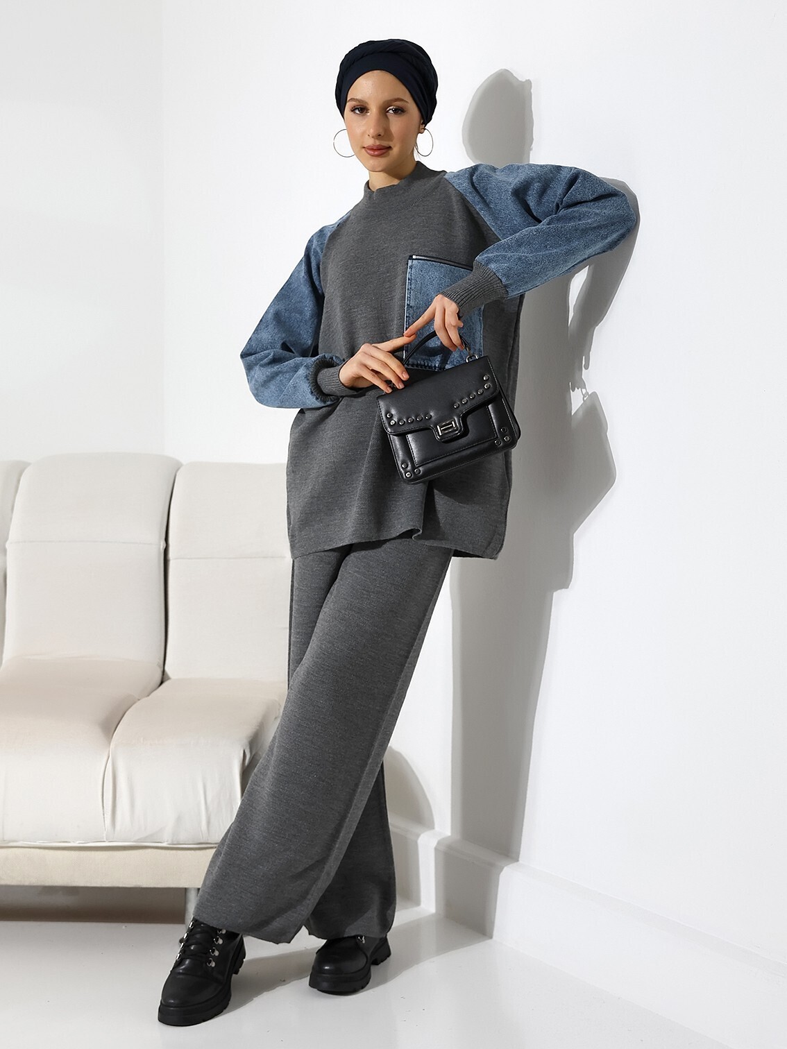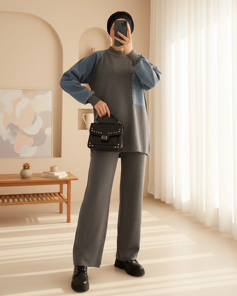 Cebi Fermuarlı Triko Takım -Füme-Füme