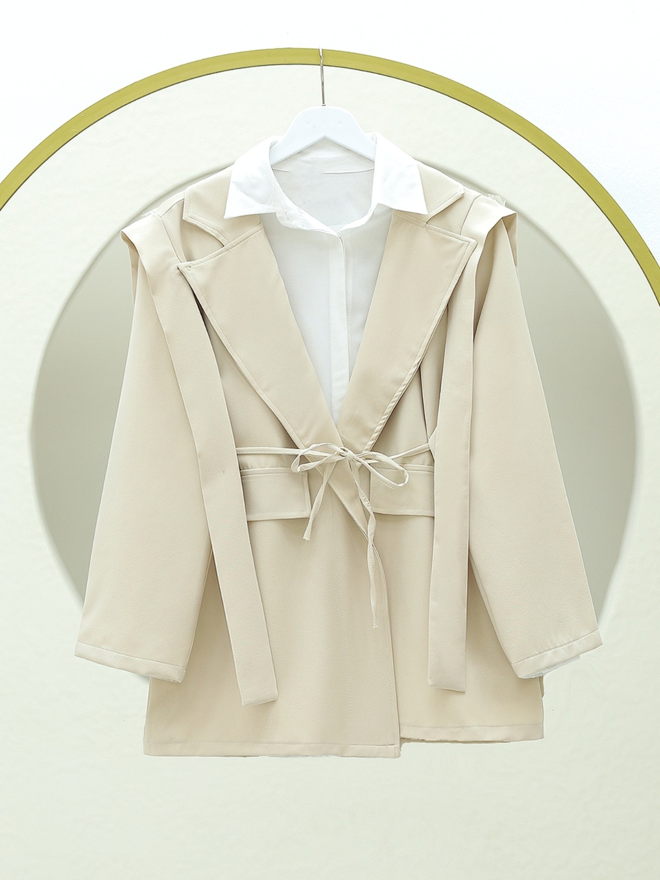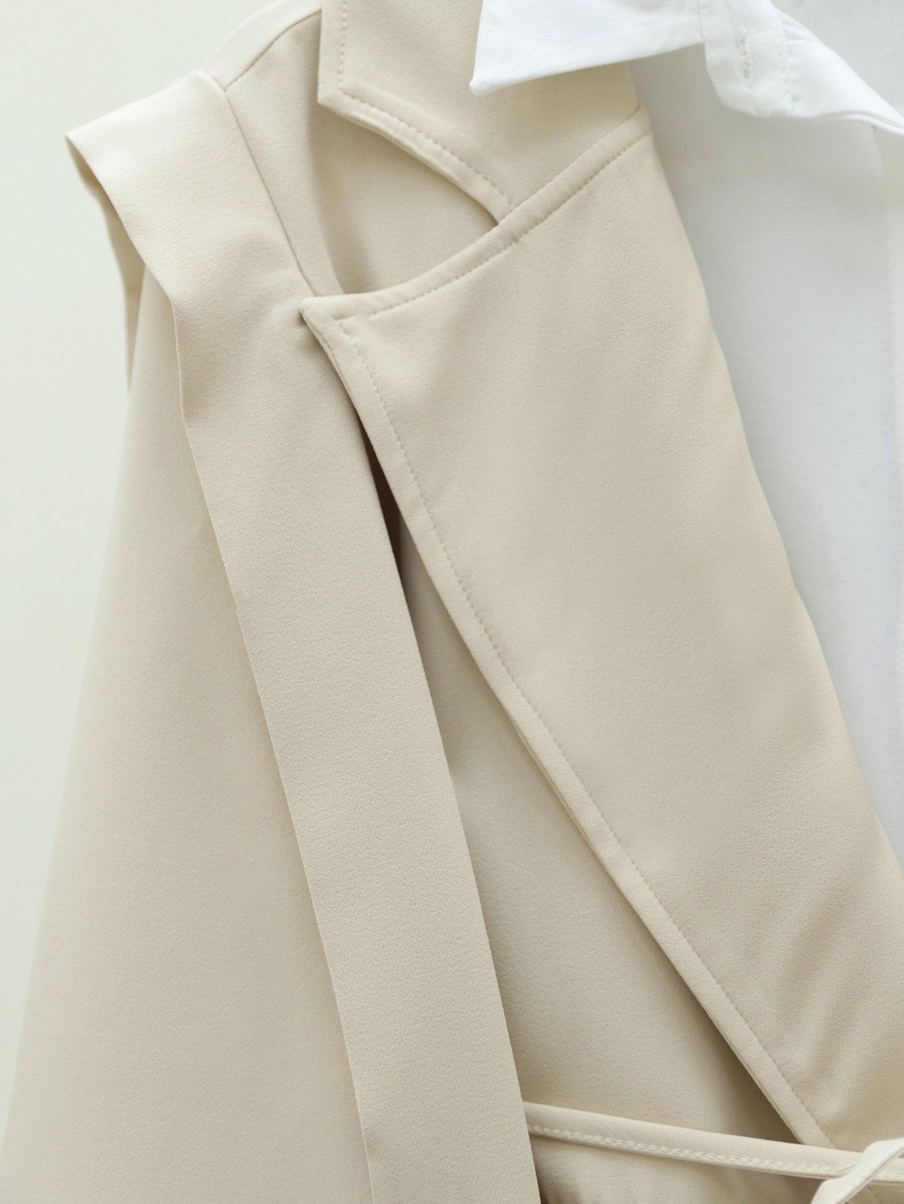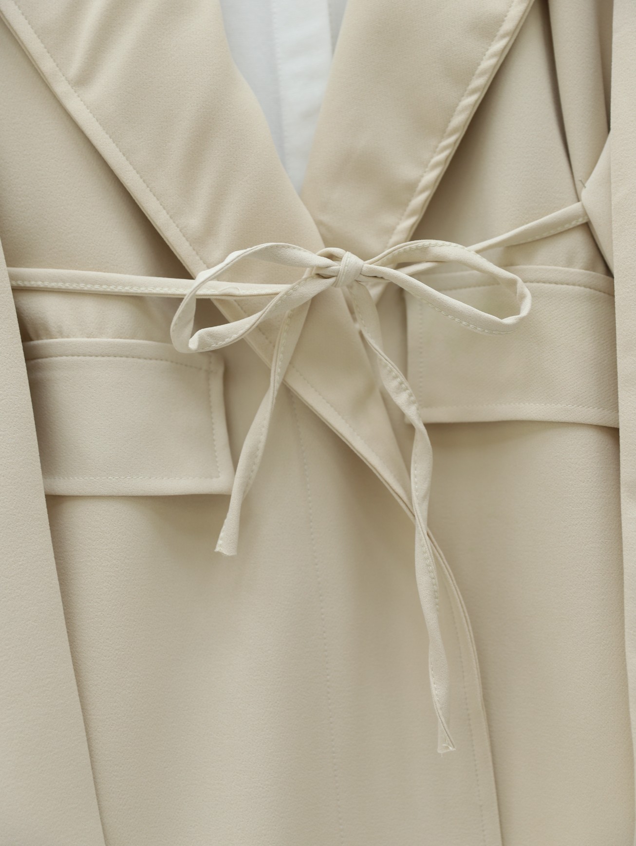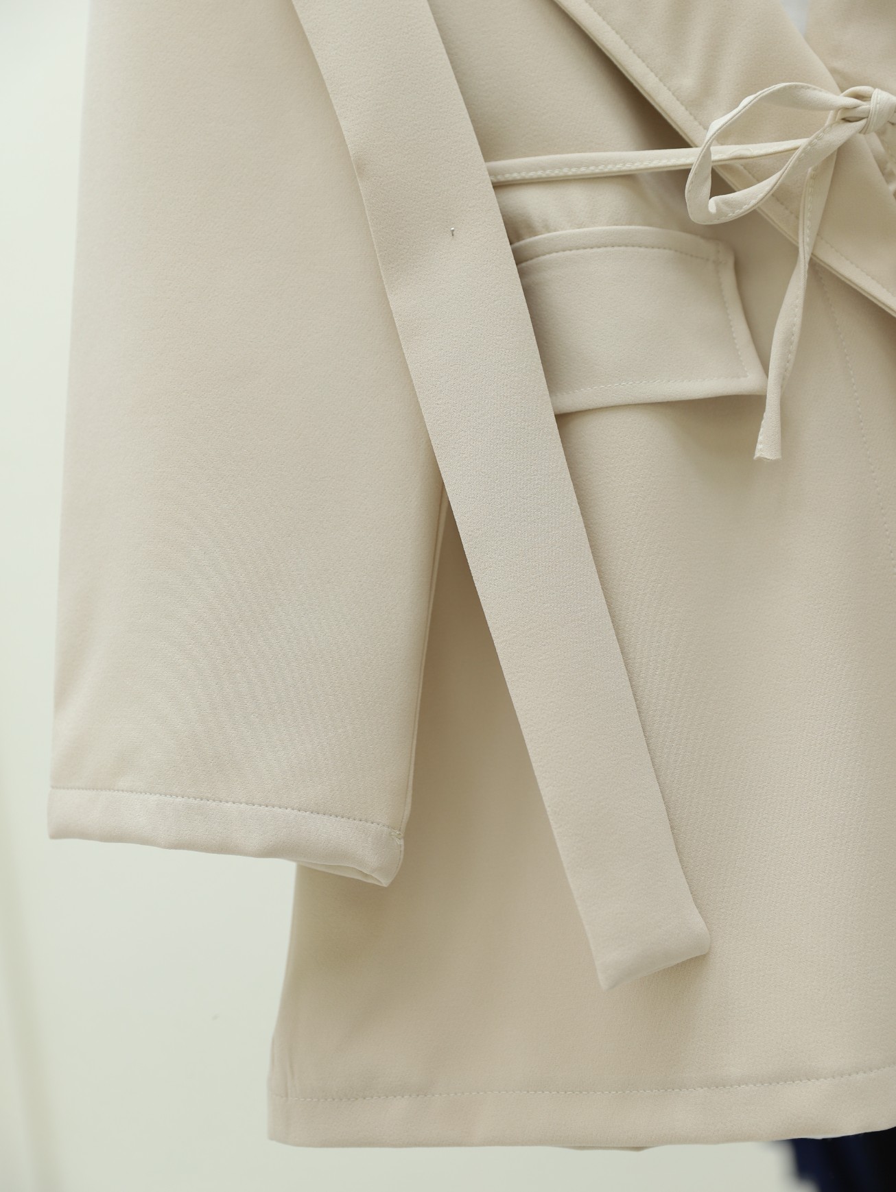 Cep Detaylı Beli Bağlamalı Ceket -Bej-Bej