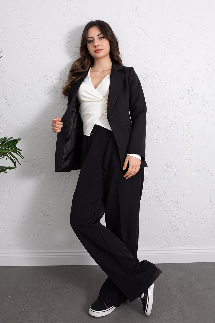 Cep Detaylı Blazer Ceket Siyah - 1459-Siyah