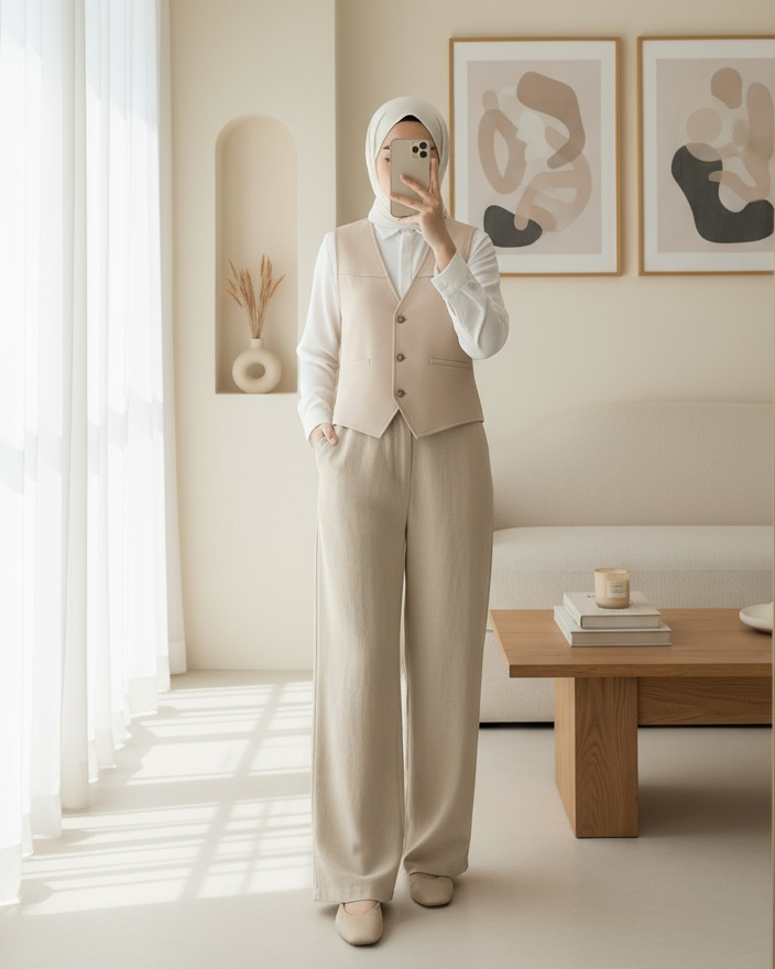 Cep Detaylı Düğmeli Scuba Yelek -Bej-Bej