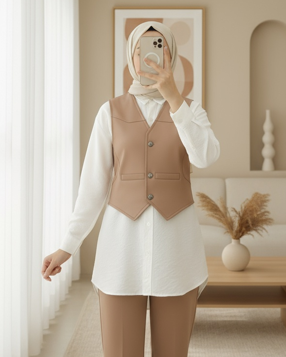 Cep Detaylı Düğmeli Scuba Yelek -Vizon-Vizon