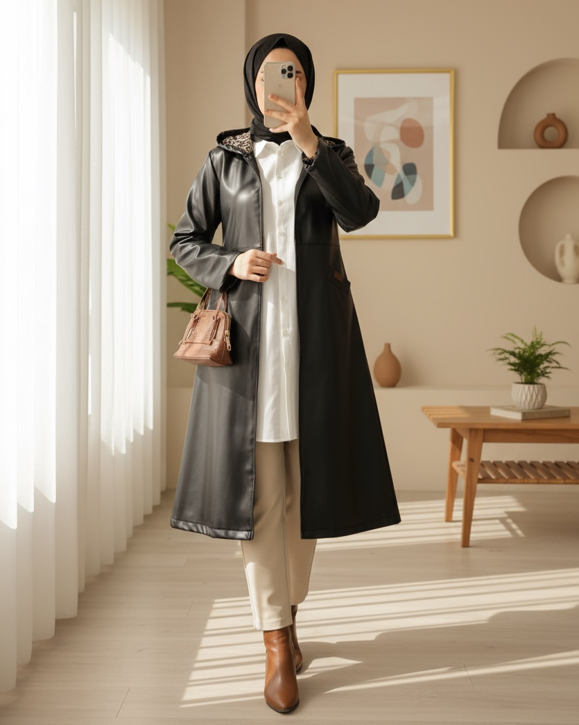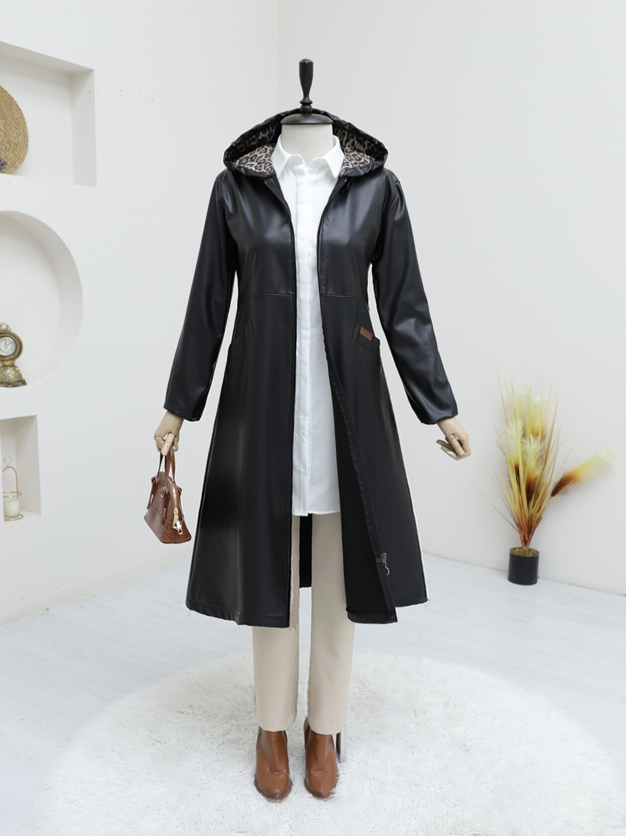 Cepli Fermuarlı Suni Deri Kap -Siyah-Siyah