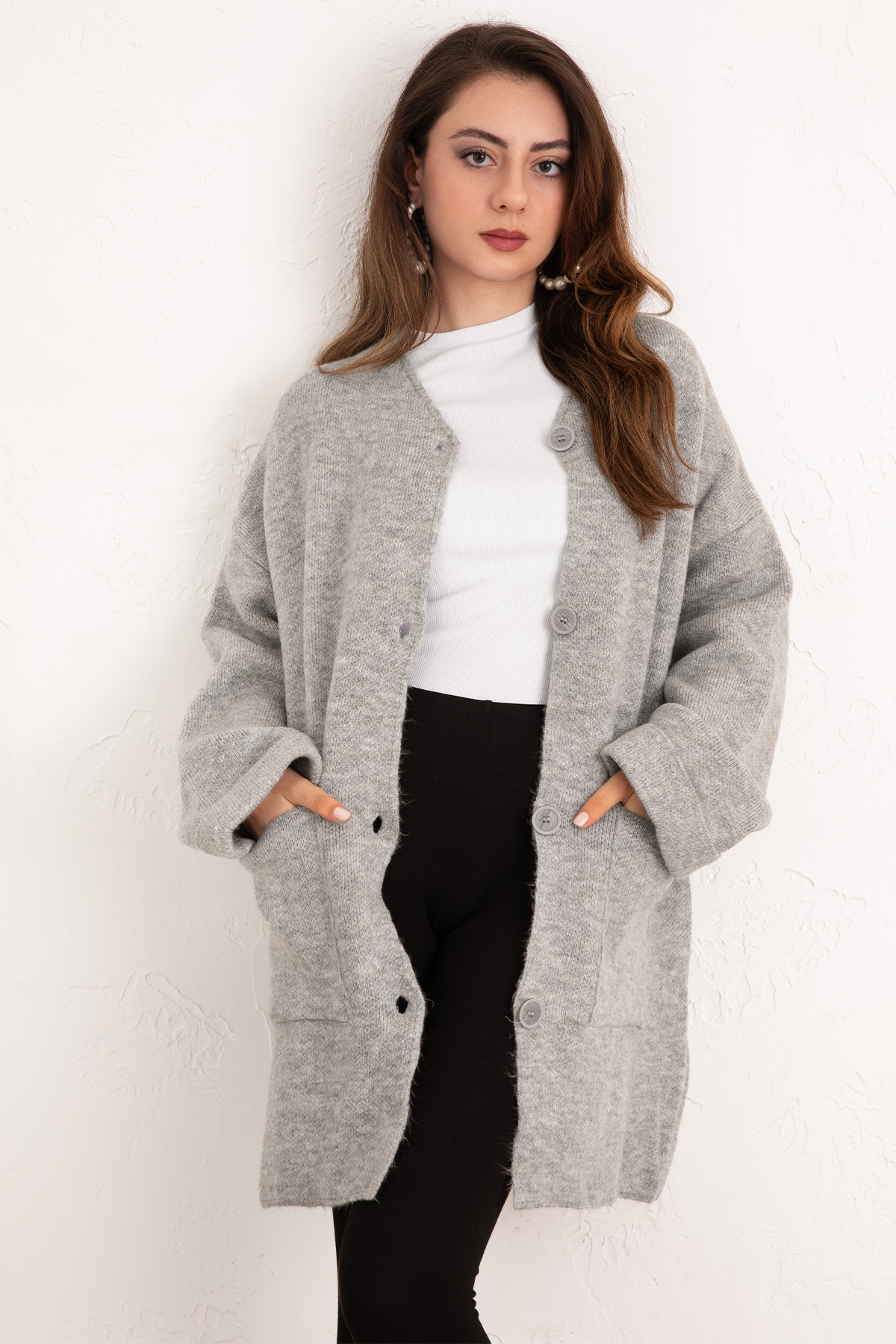 Cepli Salaş Triko Hırka WS-07446 - GRİ-Gri