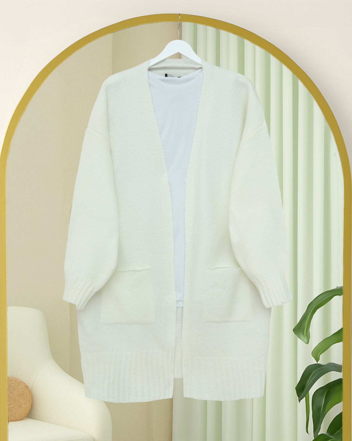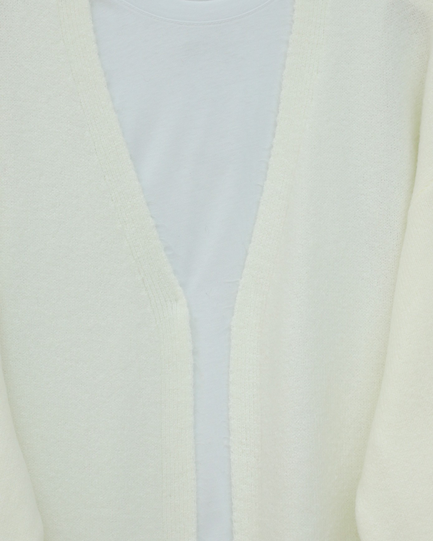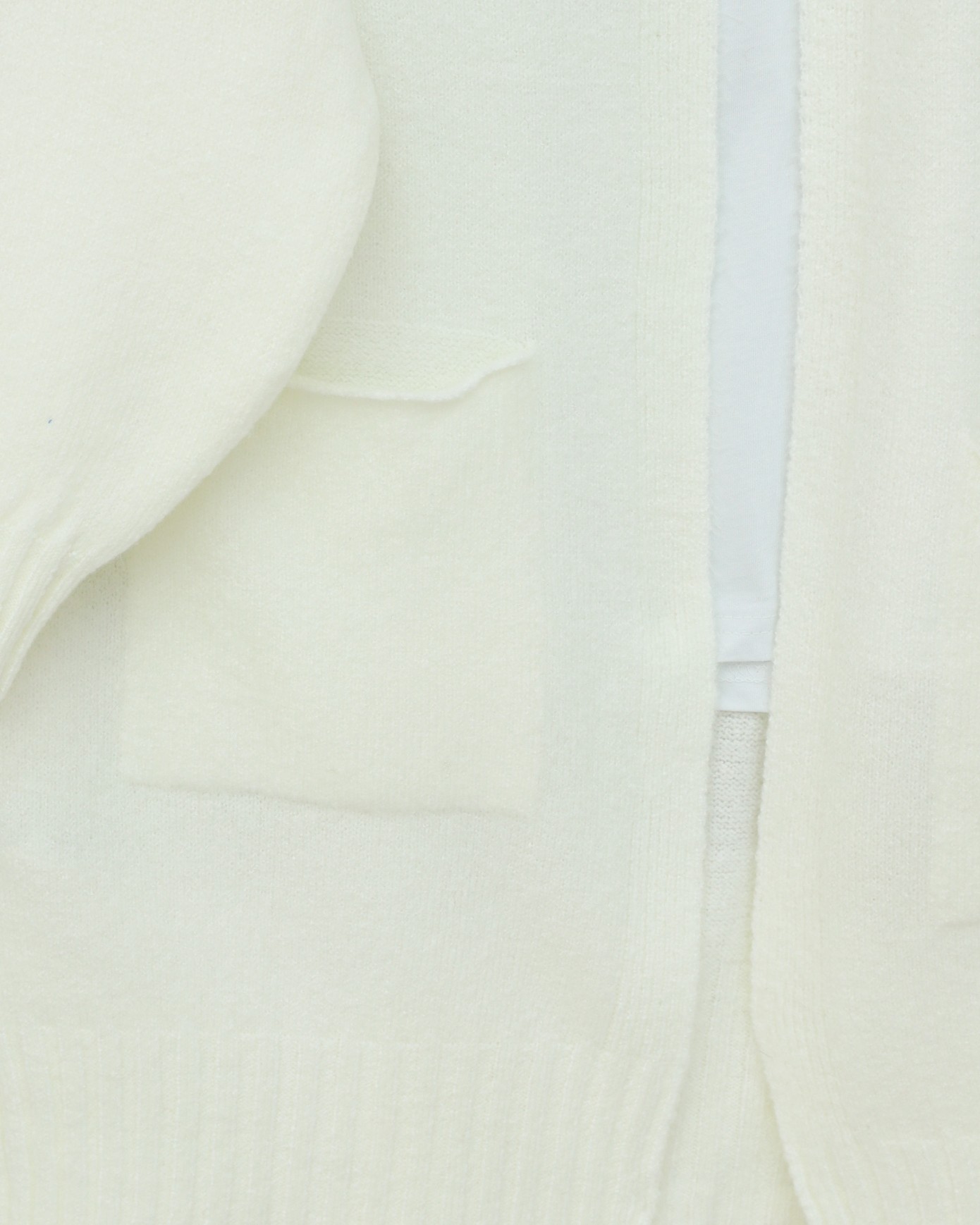 Çift Cepli Yırtmaçlı Yumoş Hırka -Beyaz-Beyaz