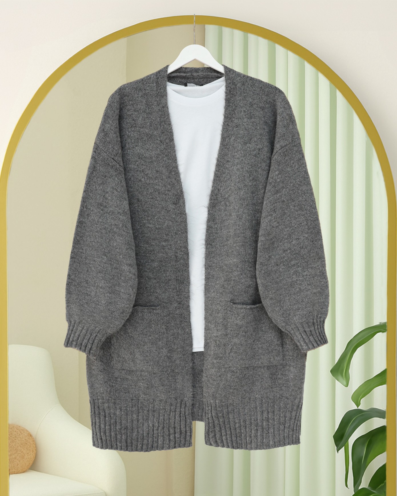 Çift Cepli Yırtmaçlı Yumoş Hırka -Füme-Füme