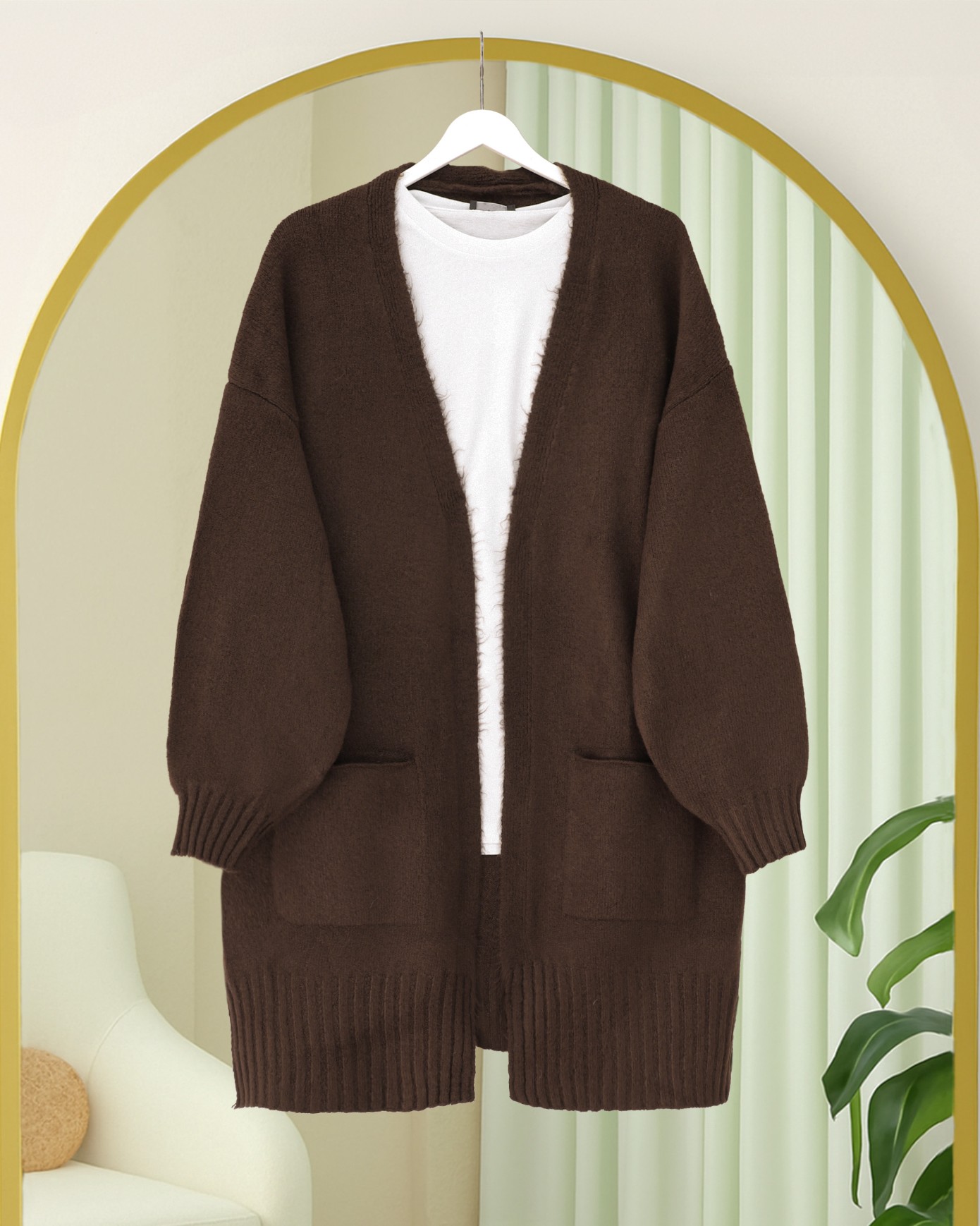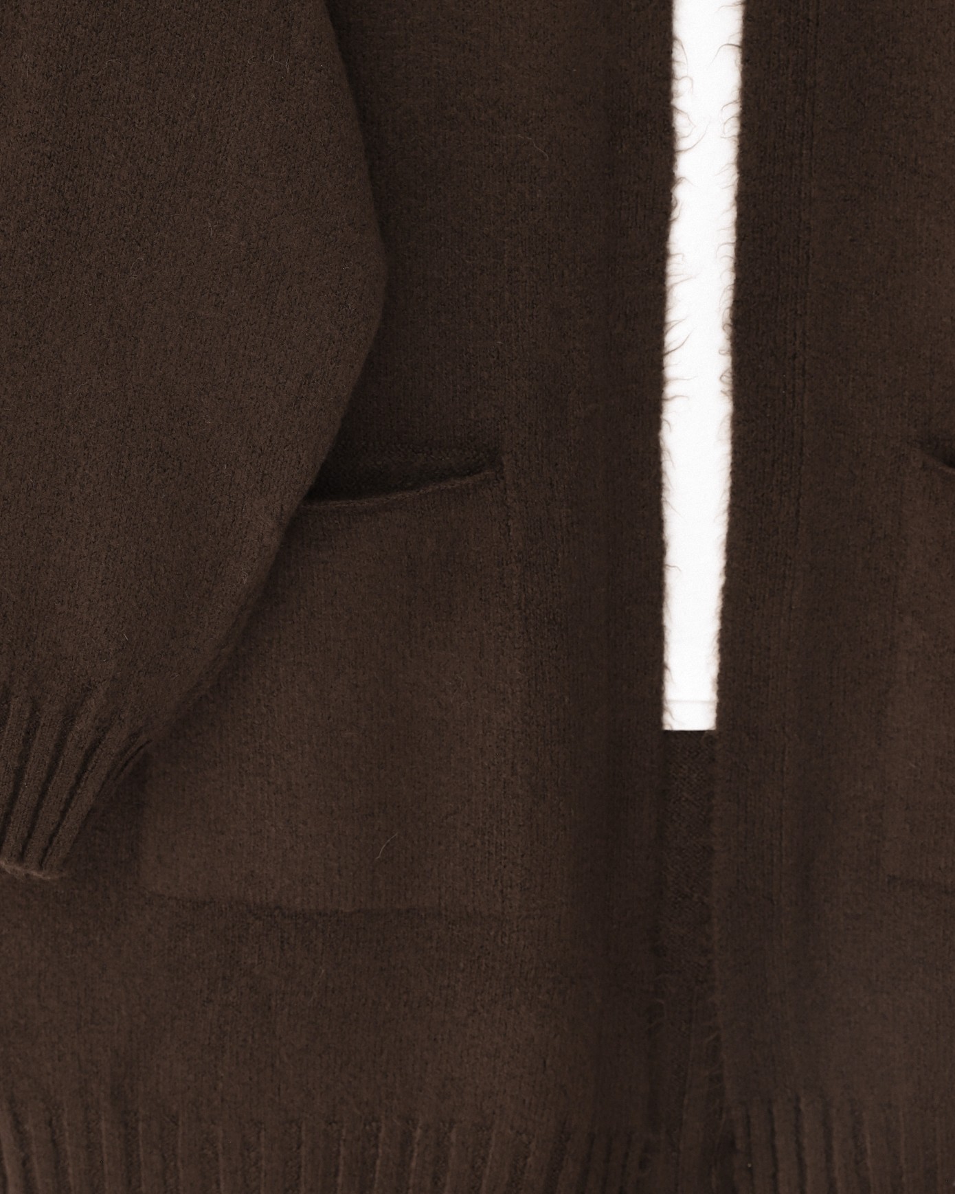 Çift Cepli Yırtmaçlı Yumoş Hırka -Kahve-Kahve