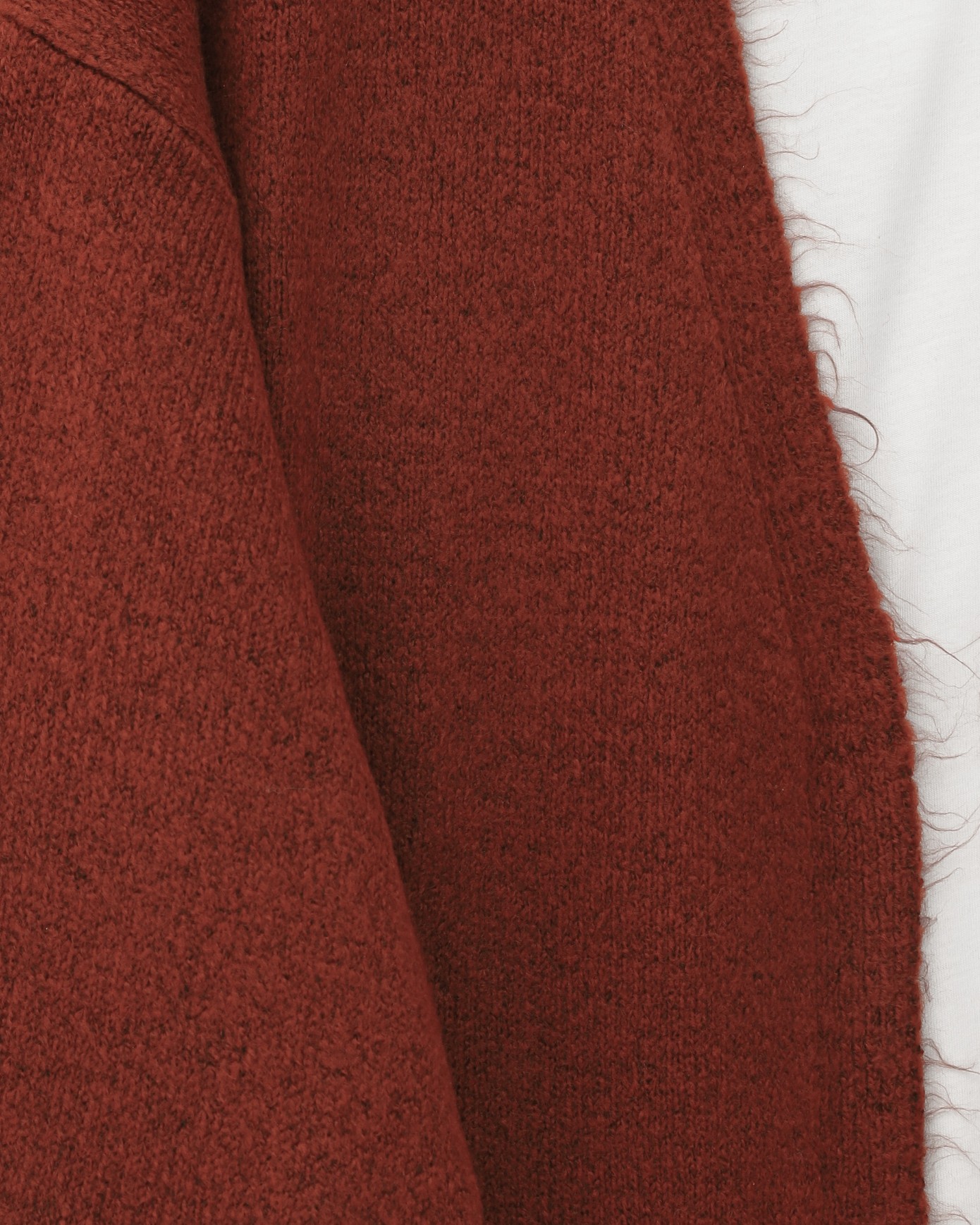 Çift Cepli Yırtmaçlı Yumoş Hırka -Kiremit-Kiremit