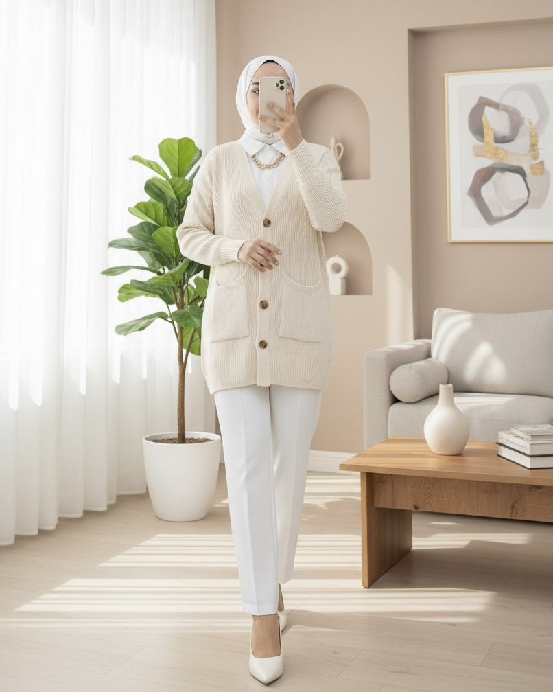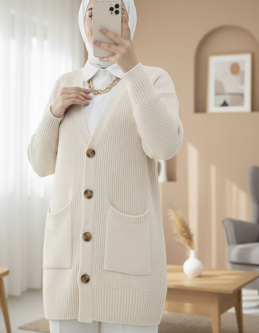 Çift Cepli Yumoş Örgü Hırka -Taş-Taş
