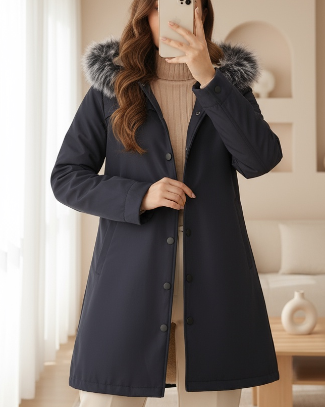 Çıkma Kapşonlu Çıtçıtlı Cepli Kısa Kaban -Laci-Lacivert