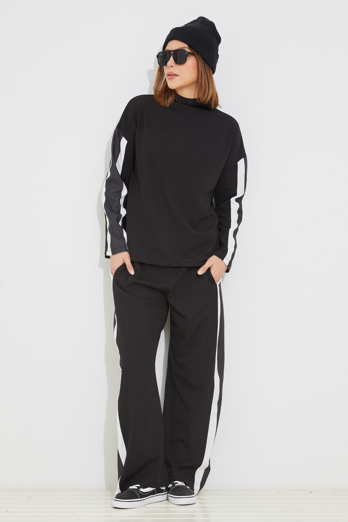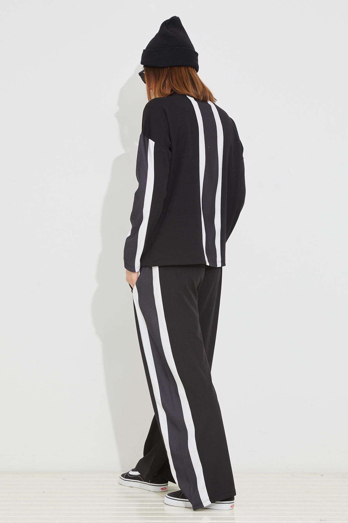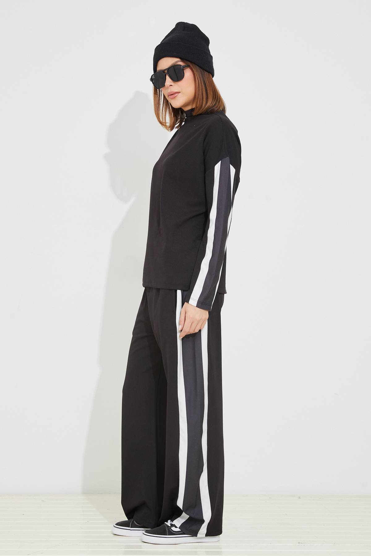 Çizgili Eşofman Takımı-Siyah