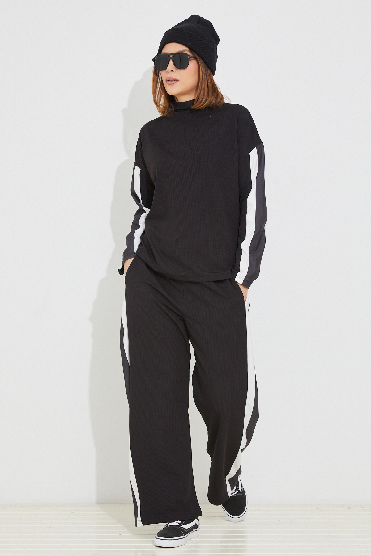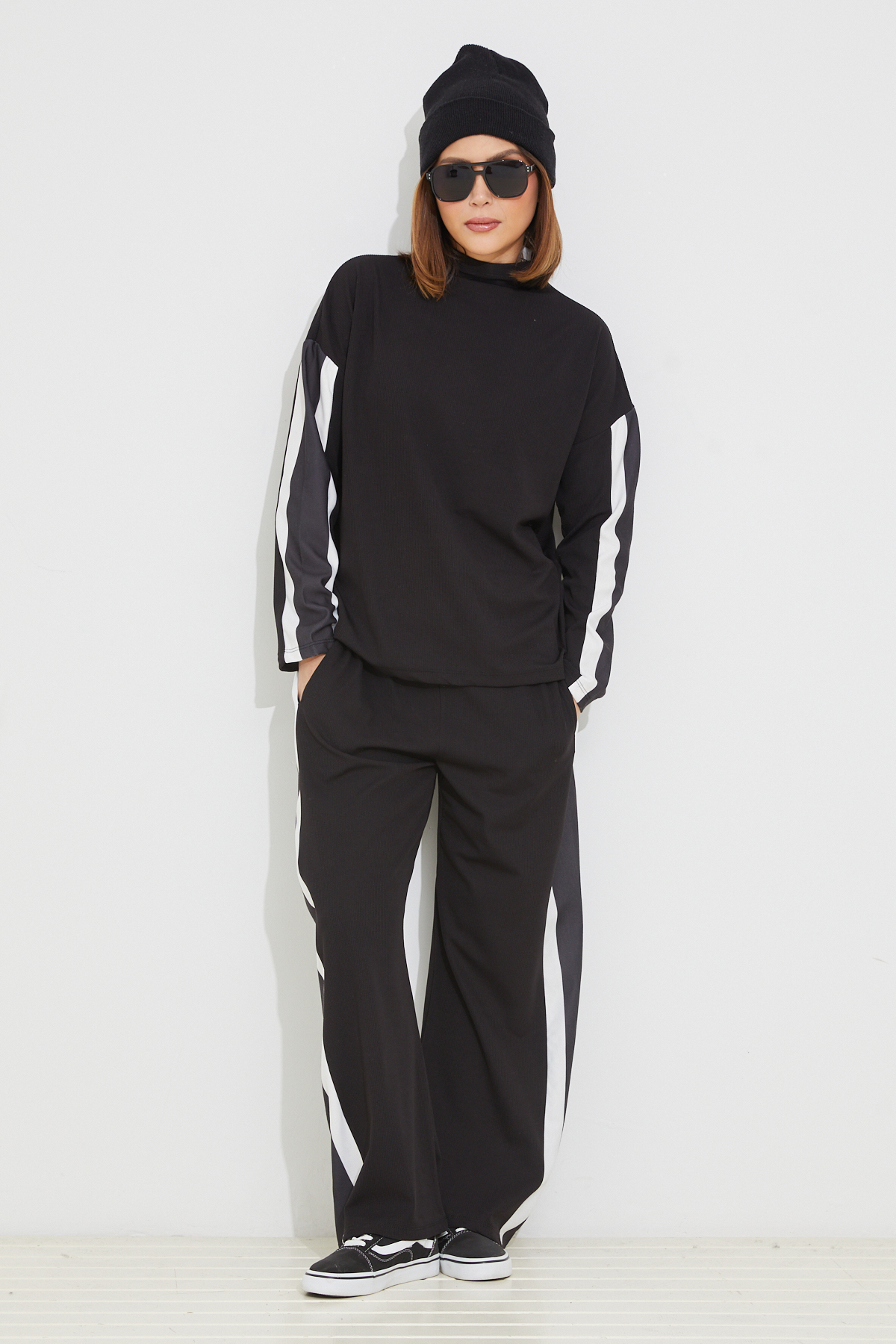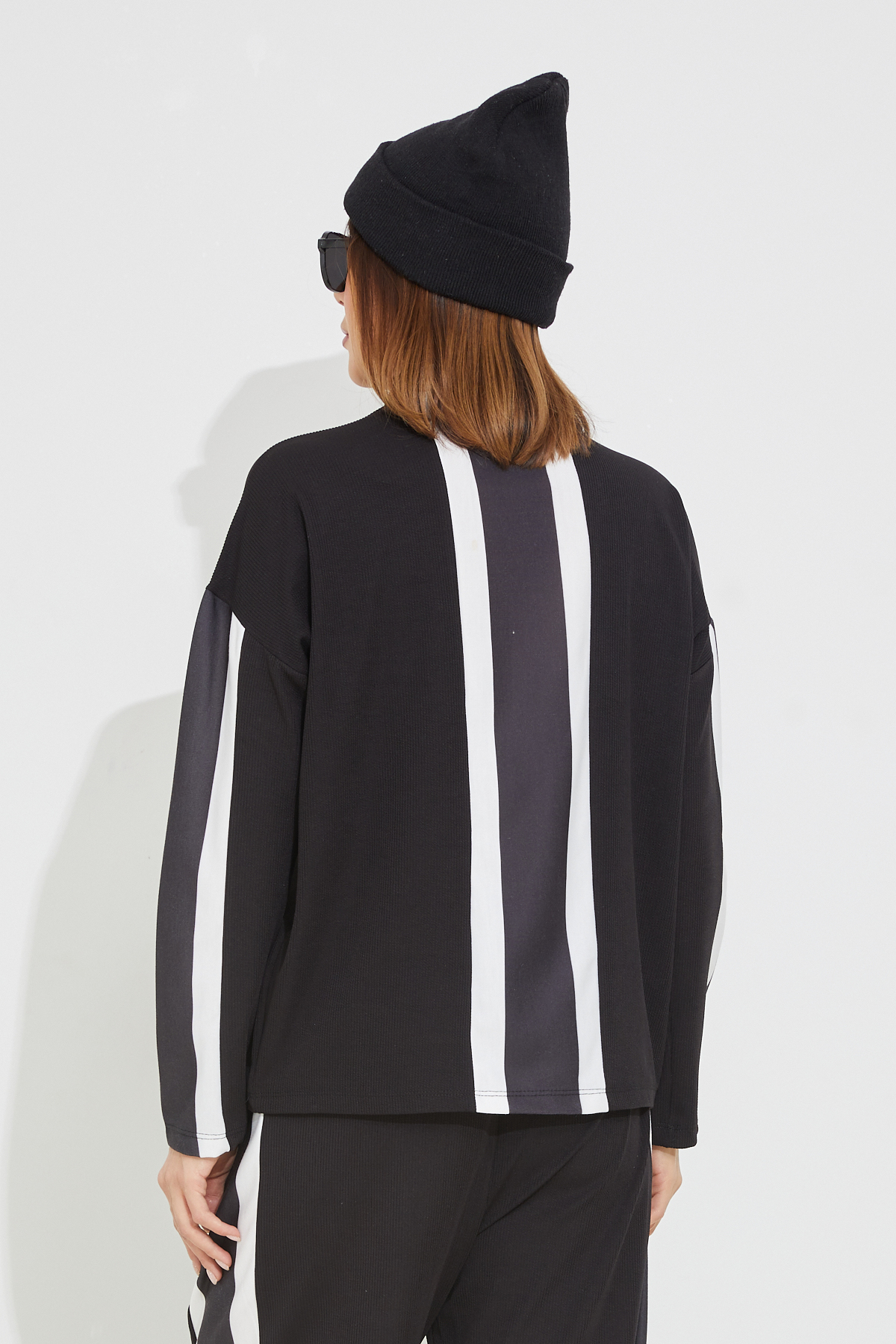 Çizgili Eşofman Takımı-Siyah