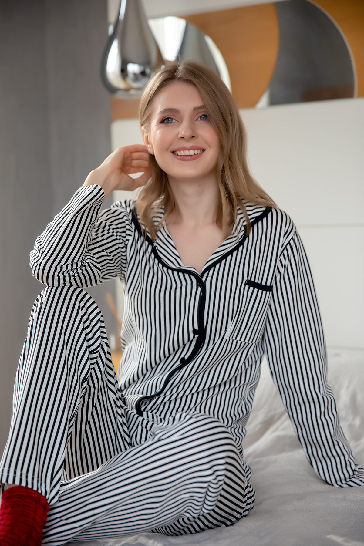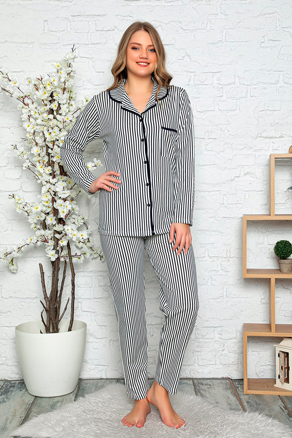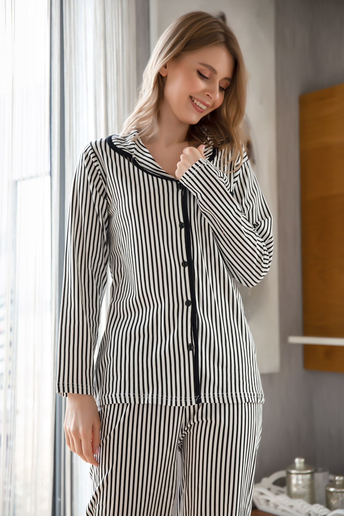 Çizgili Pijama Takımı-Siyah
