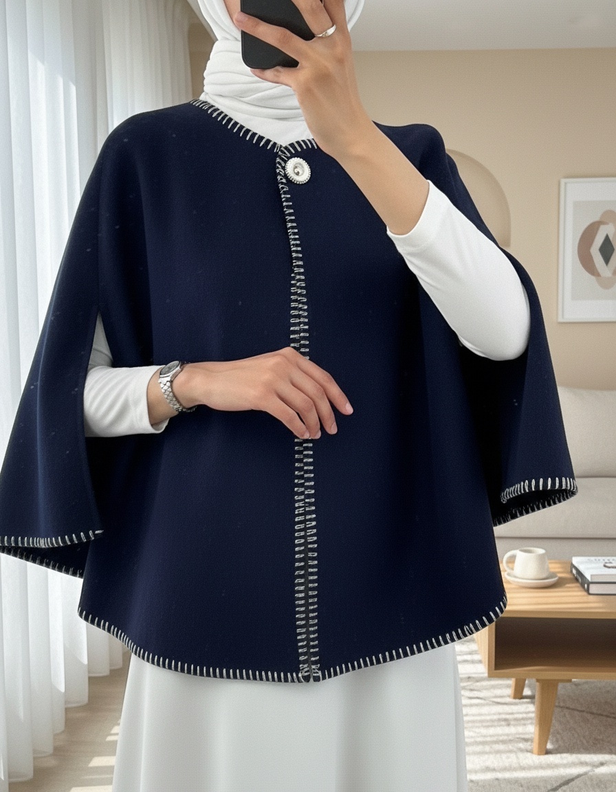 Çoban Dikişli Cepli Kaşe Panço -Laci-Lacivert