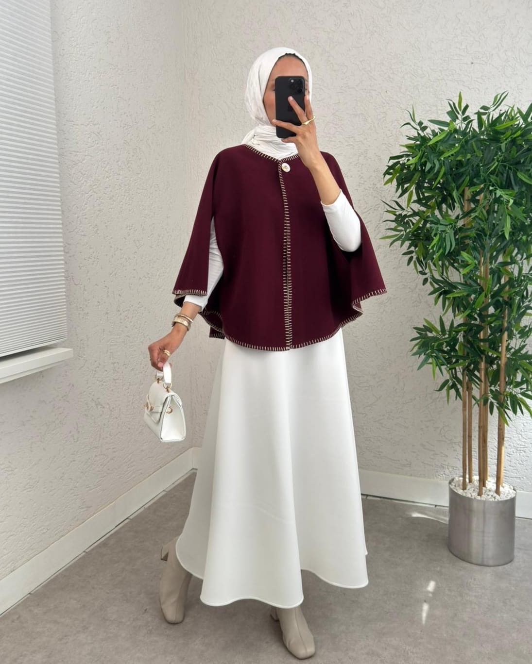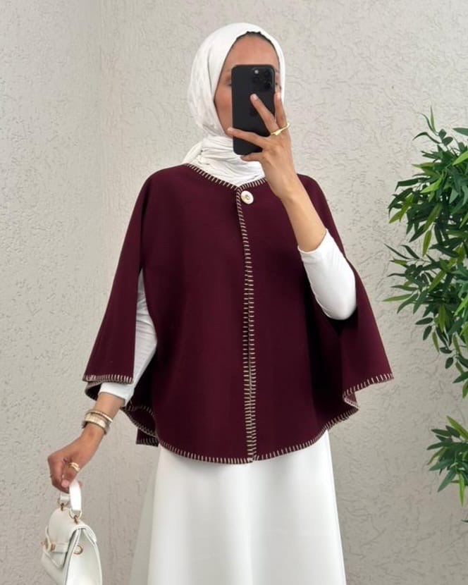 Çoban Dikişli Cepli Kaşe Panço -Mürdüm-Mürdüm