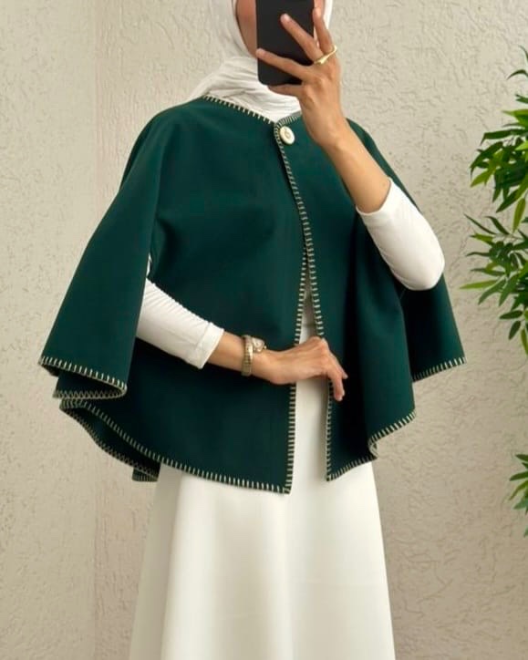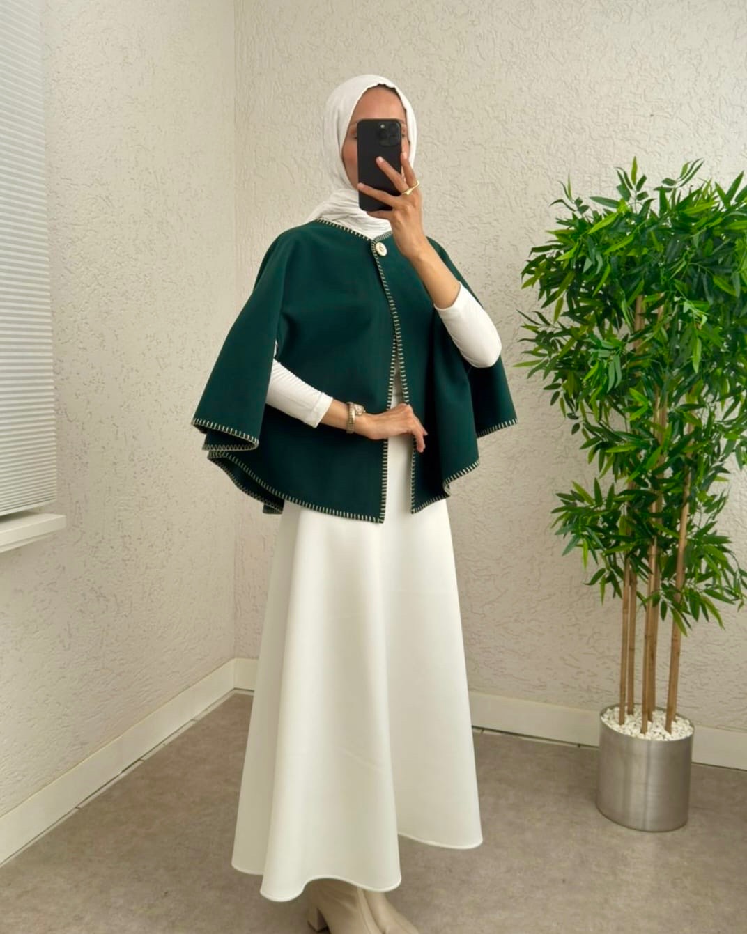 Çoban Dikişli Cepli Kaşe Panço -Zümrüt-Zümrüt