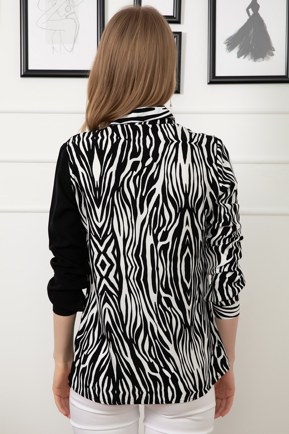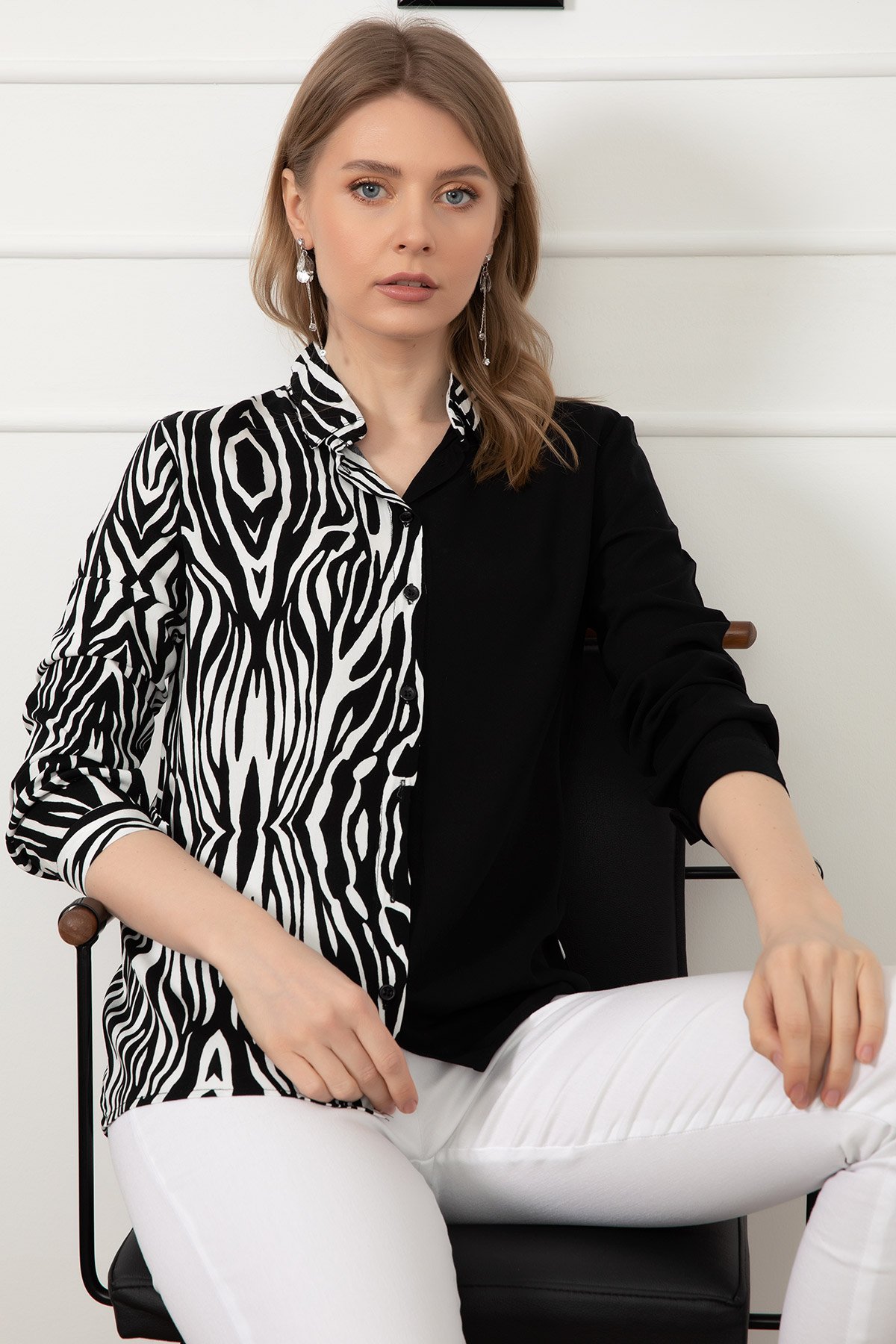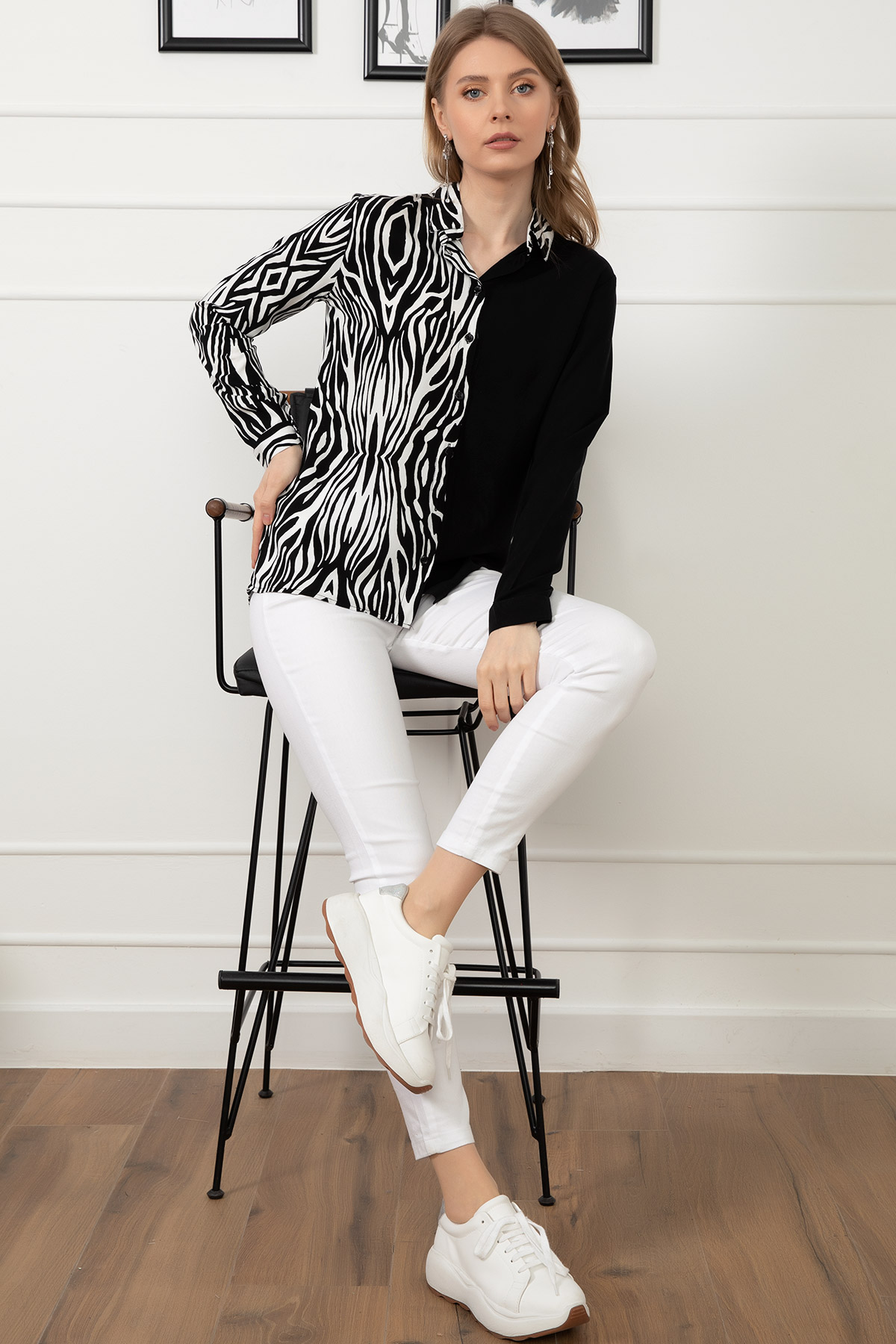 Desenli İki Renkli Gömlek-Beyaz - Siyah