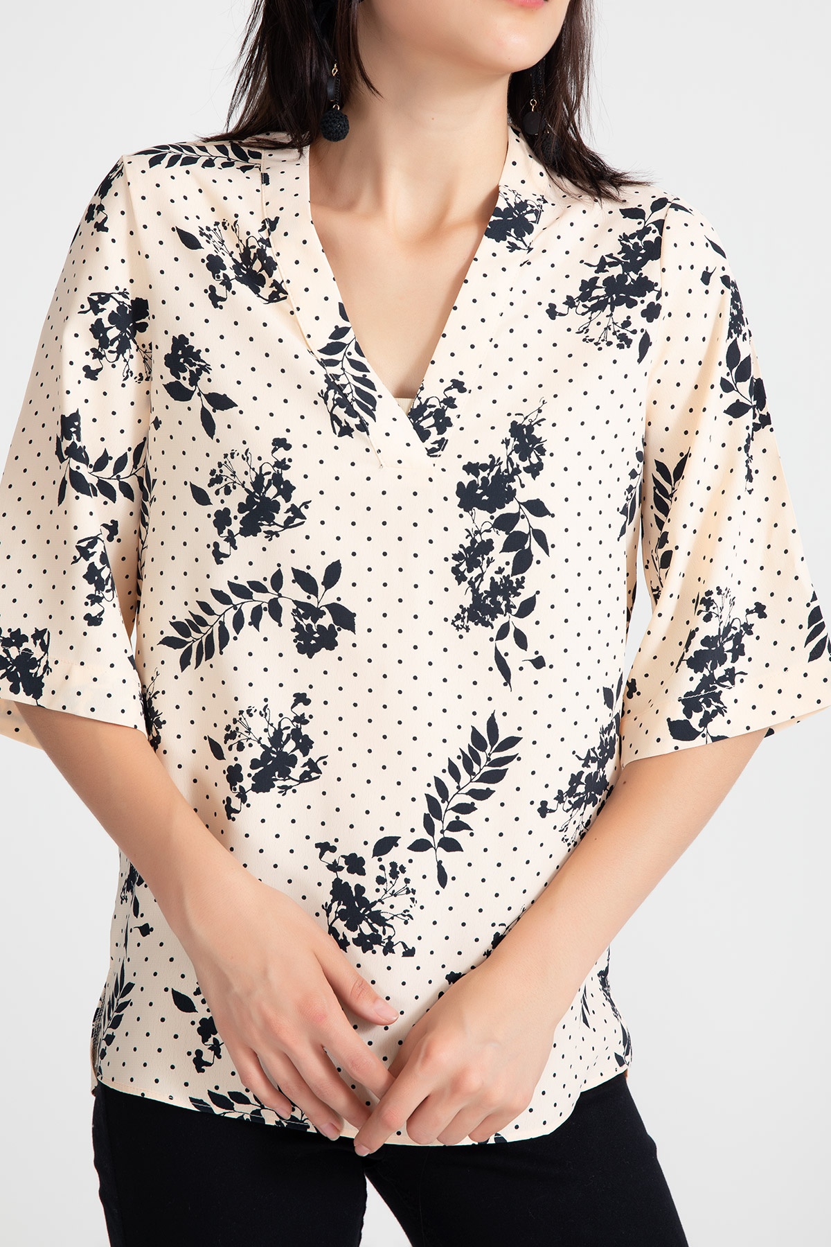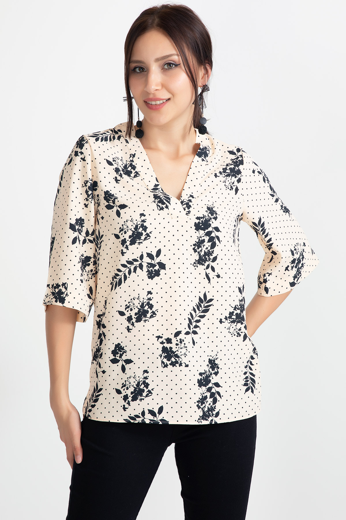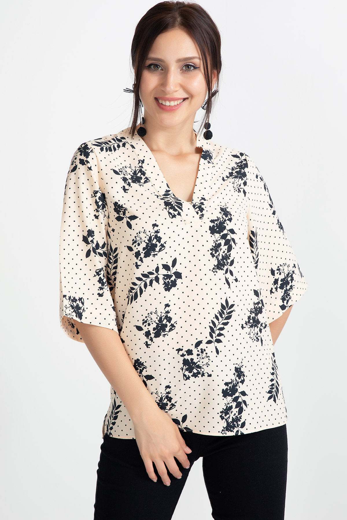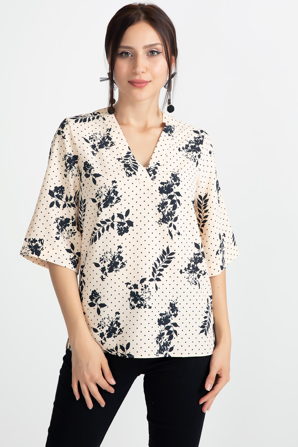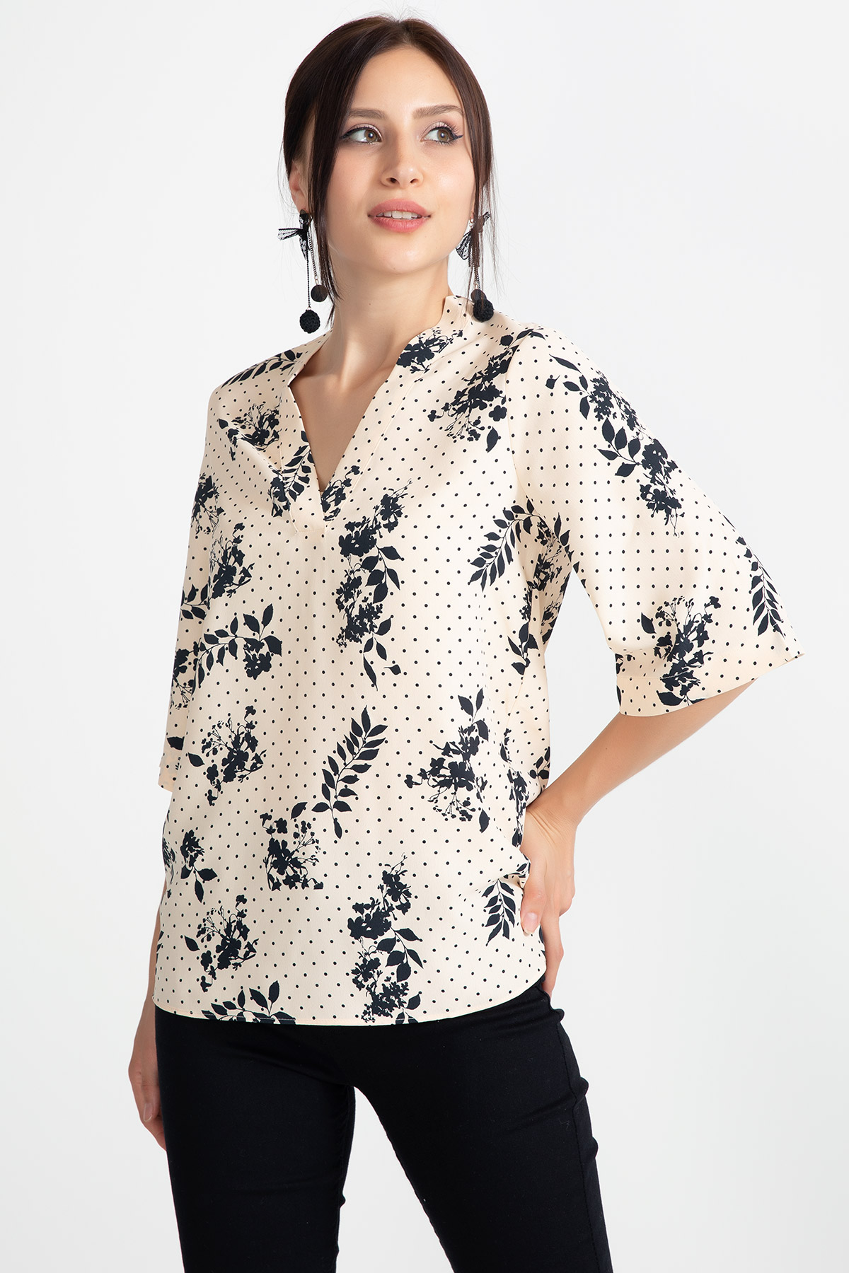 Desenli Kapri Kol Bluz-Somon