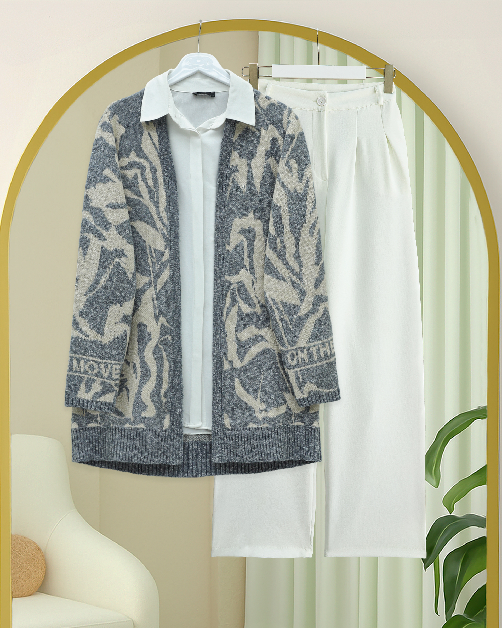 Desenli Salaş Triko Hırka -İndigo-İndigo