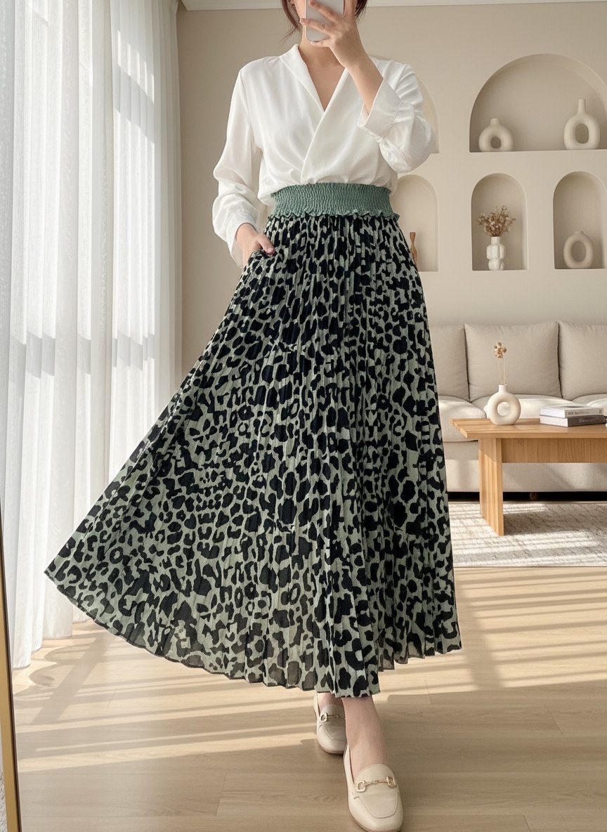 Dijital Baskılı Pliseli Etek -Su Yeşili-Su Yeşili