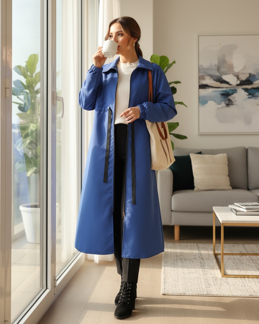 Dik Yaka Tünel Bağcıklı Trenc -Saks-Saks