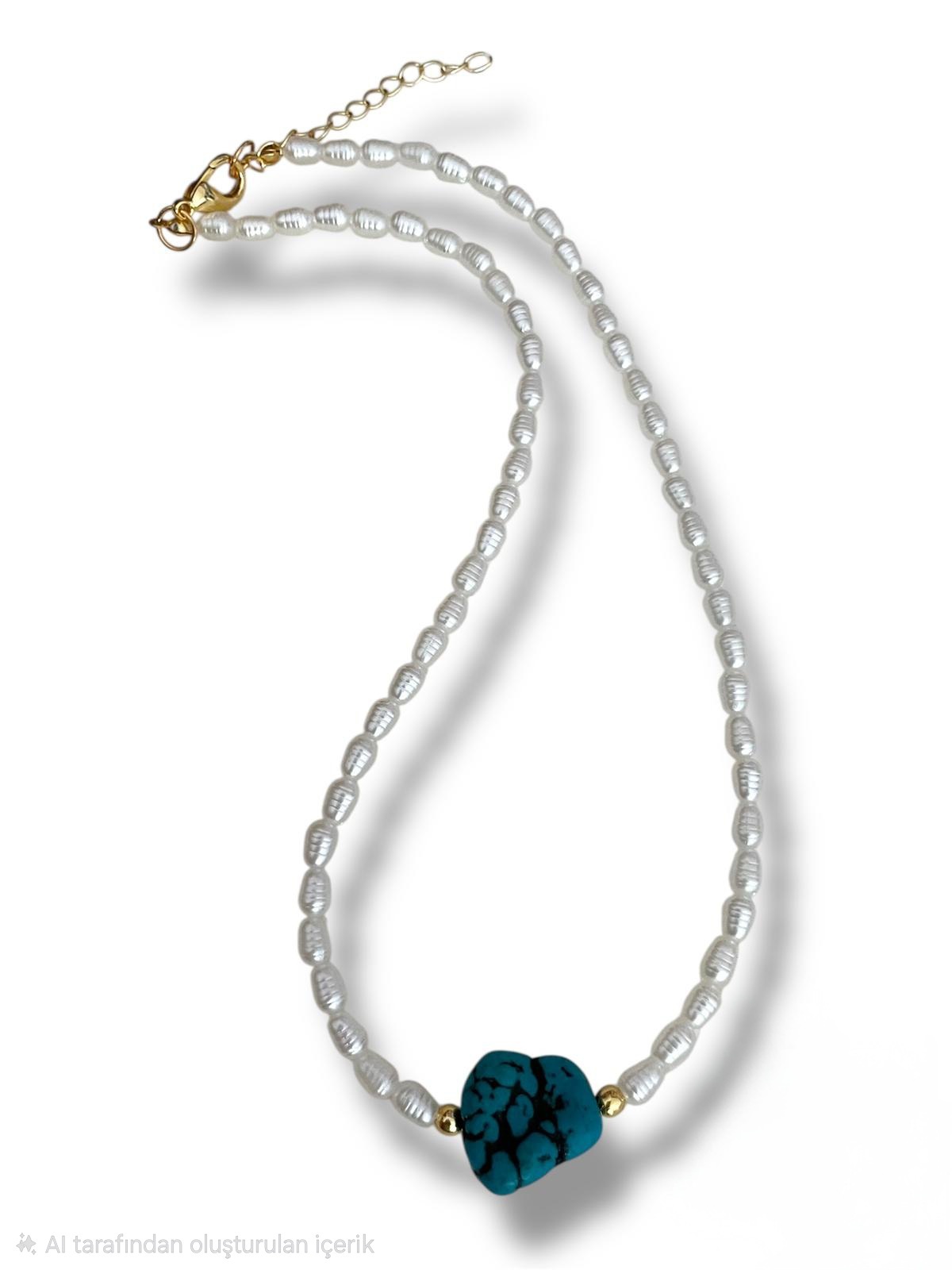 Dizi Kum İncili Doğal Taş Kolye -Krem-Krem