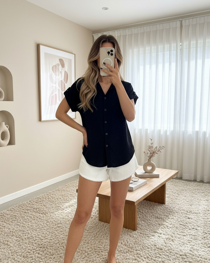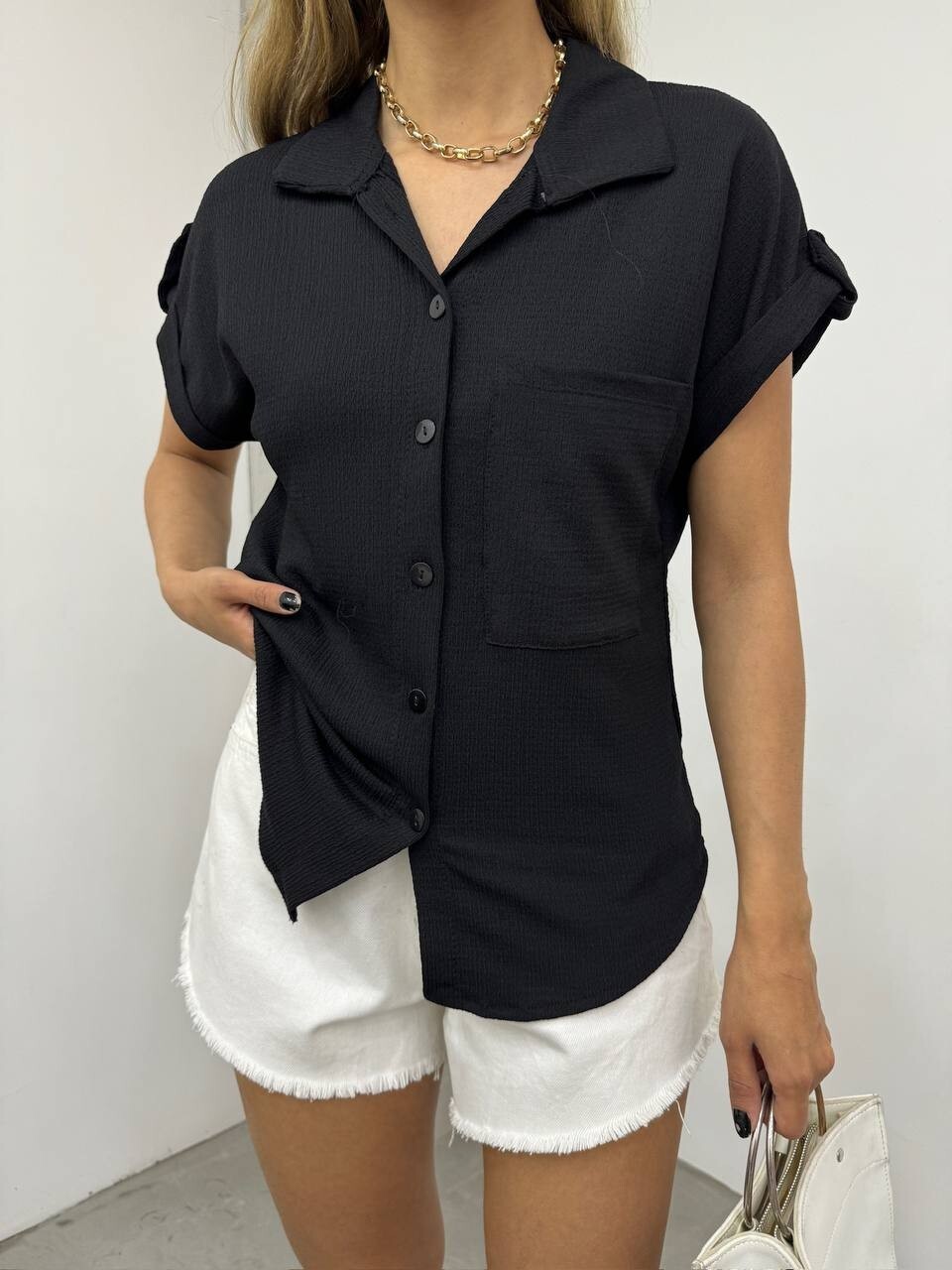 Duble Kol Tek Cepli Bürümcük Gömlek -Siyah-Siyah