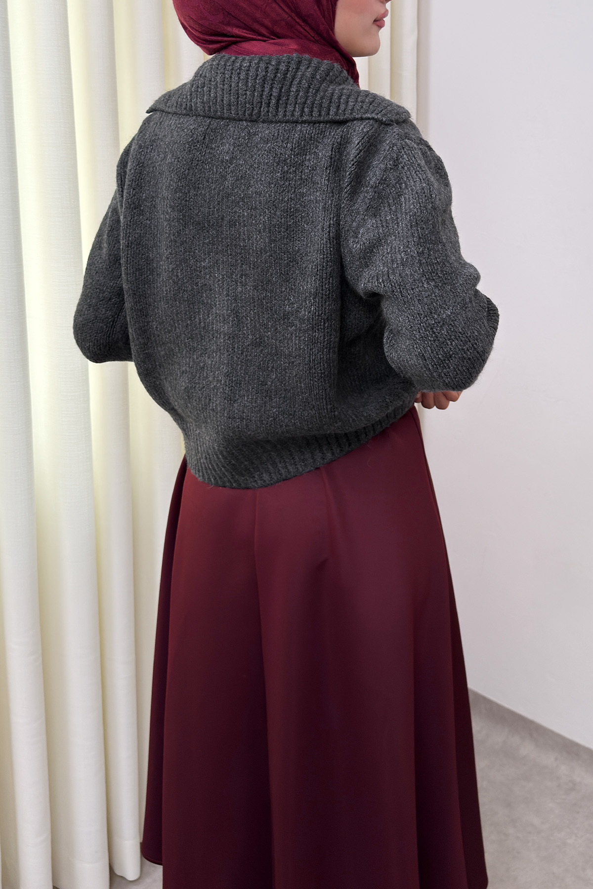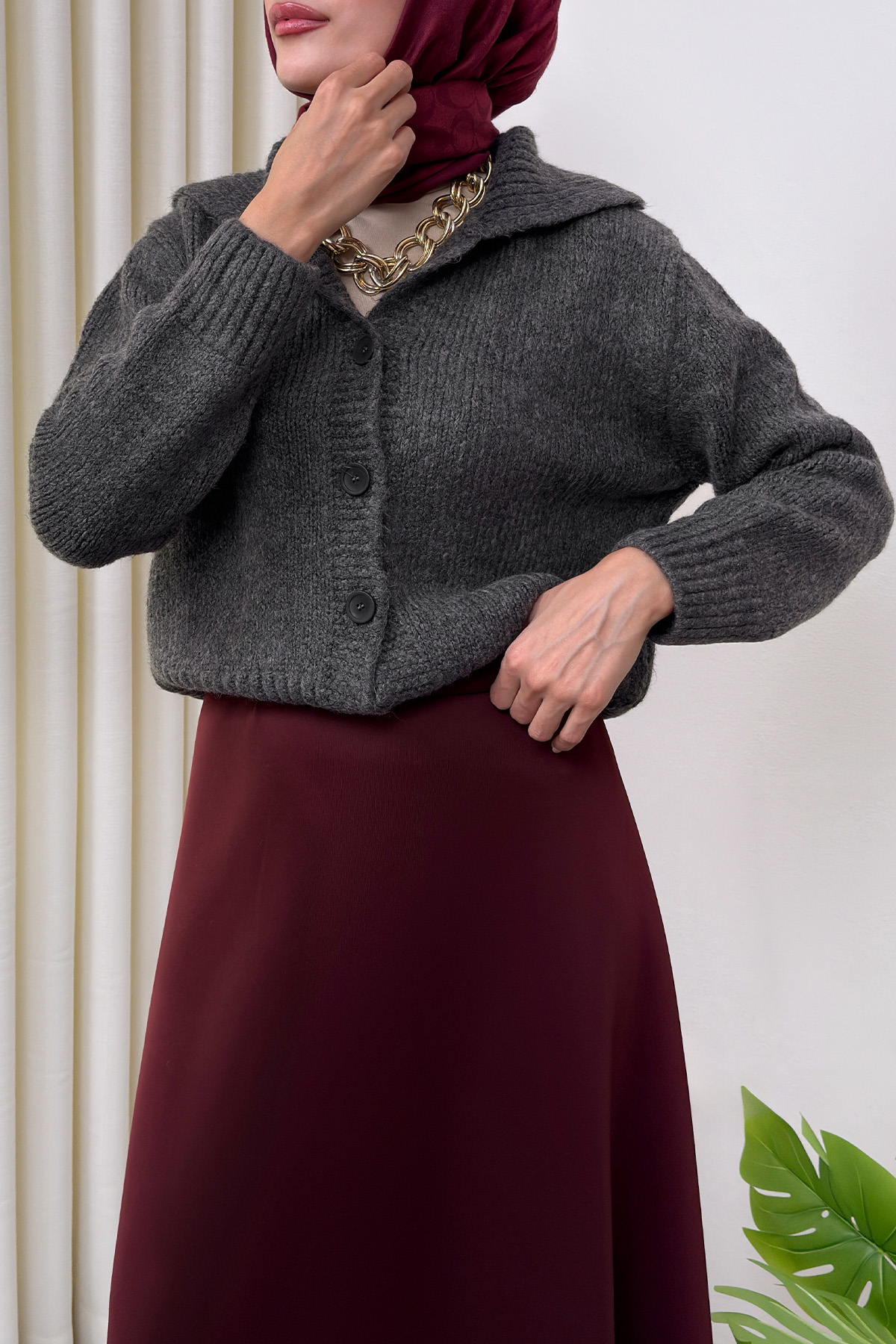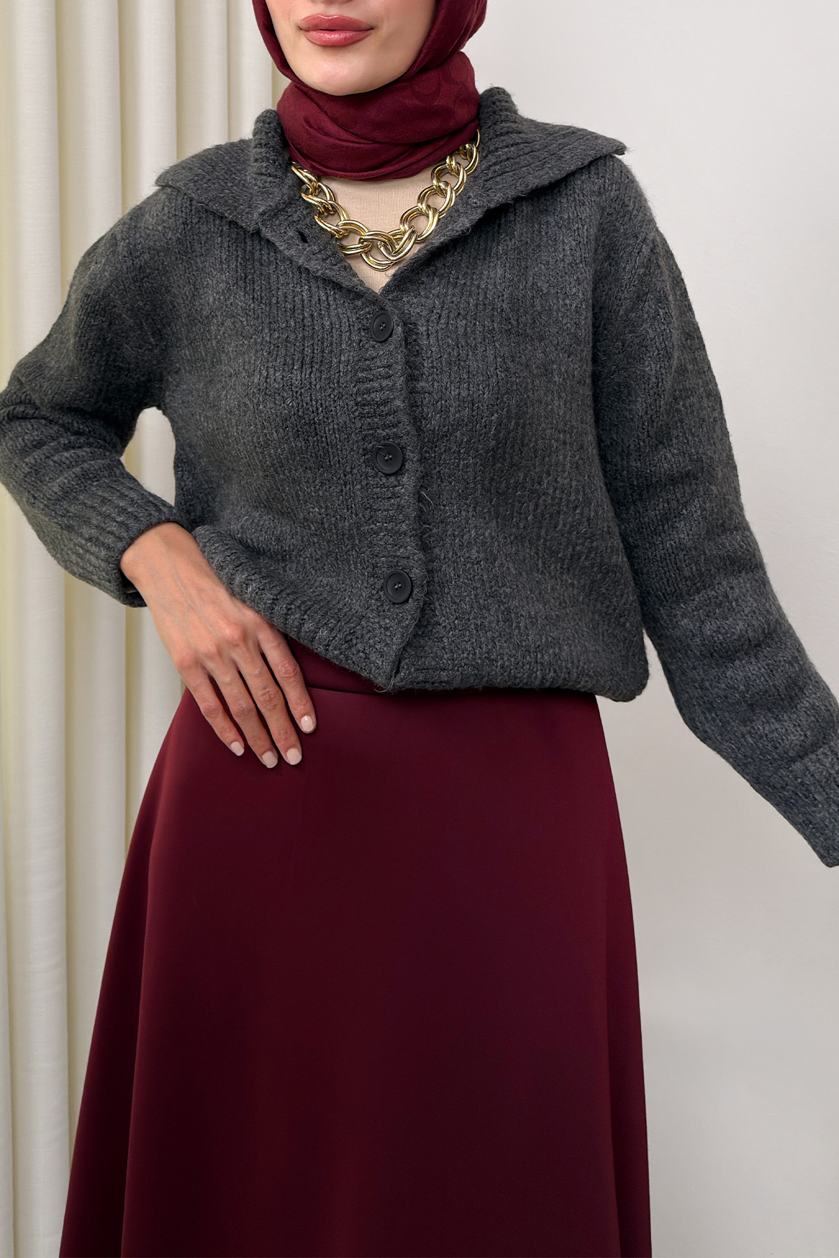 Düğme Detaylı Triko Hırka HI00179 - ANTRASİT-Antrasit