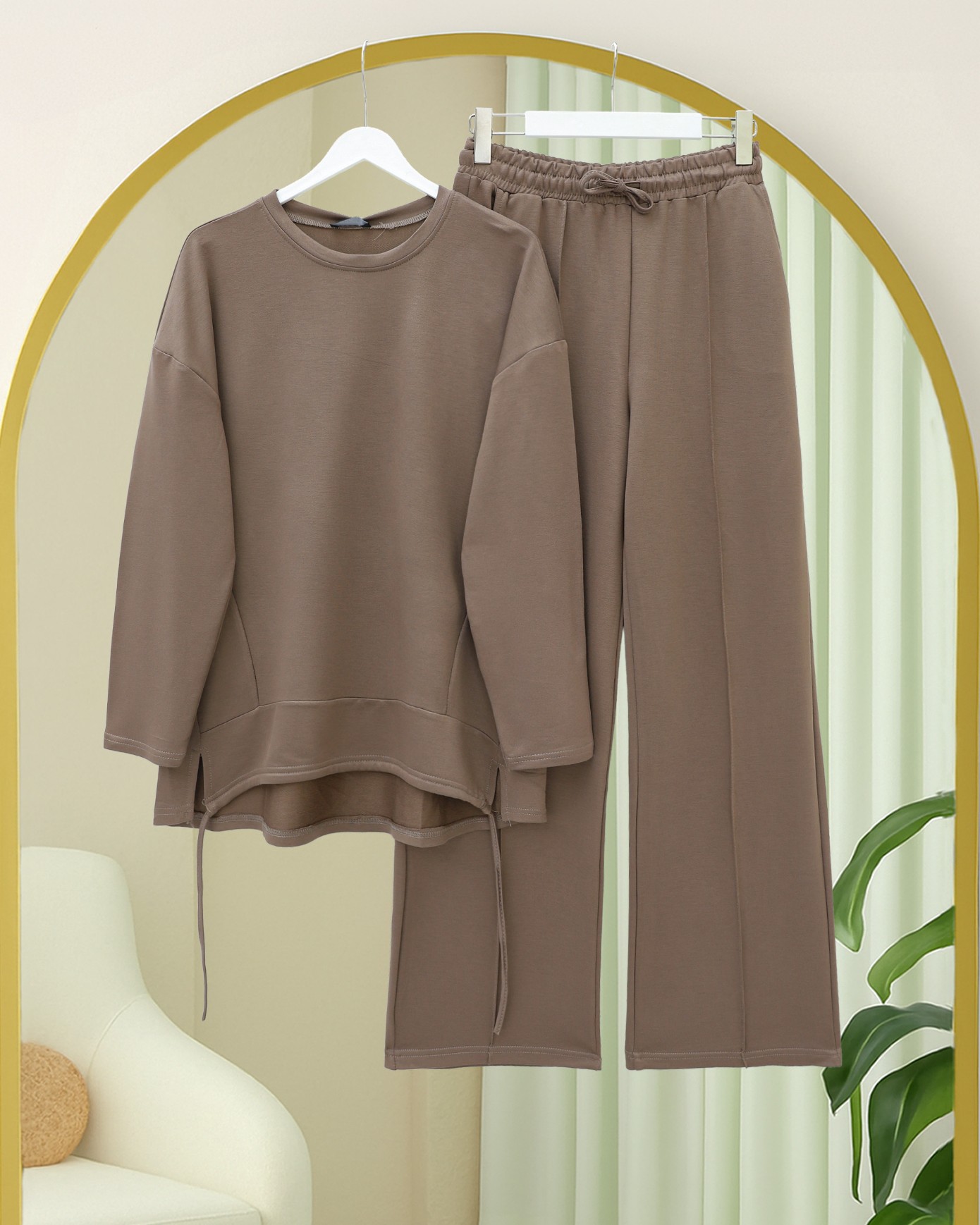 Eteği Bağcıklı Arkası Uzun Oysho Takım -Açık Kahve-Açık Kahve