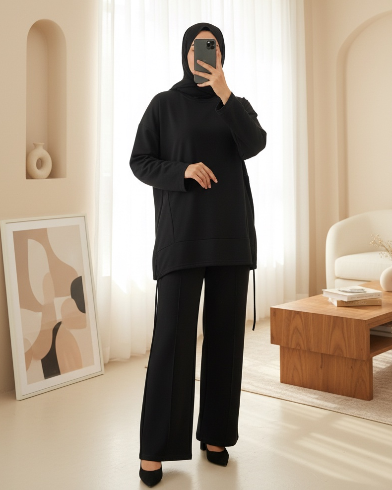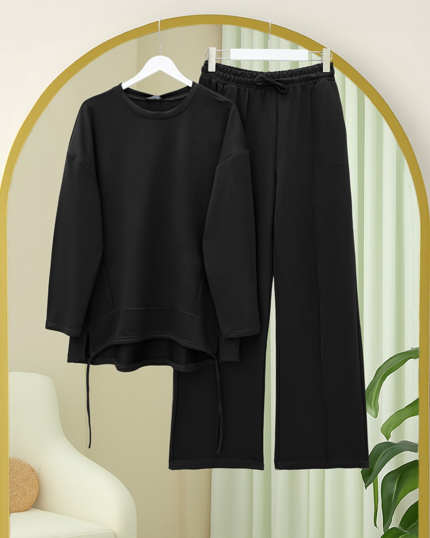 Eteği Bağcıklı Arkası Uzun Oysho Takım -Siyah-siyah