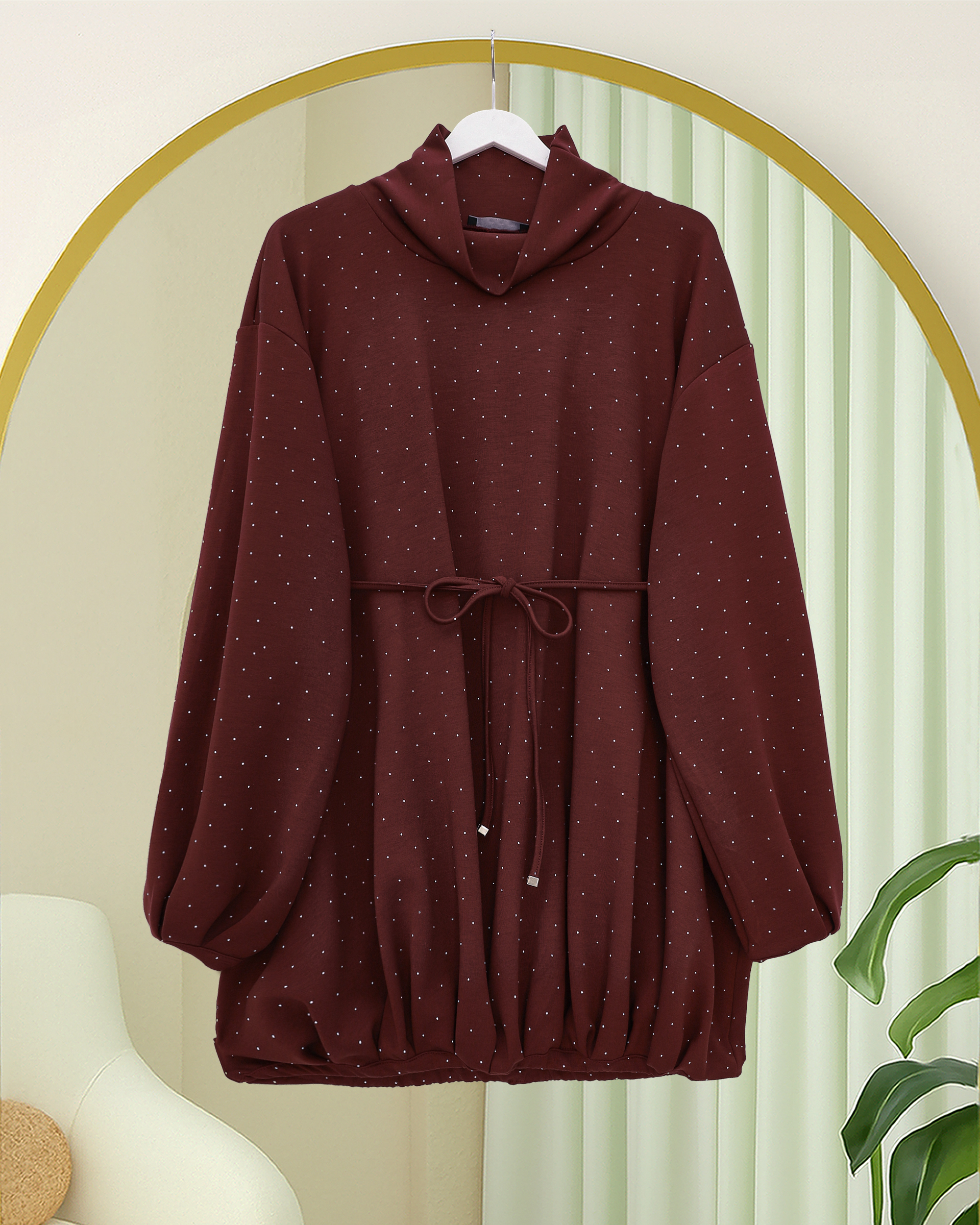 Eteği Lastikli Beli Bağcıklı Yarım Boğazlı Oysho Sweat -Bordo-Bordo