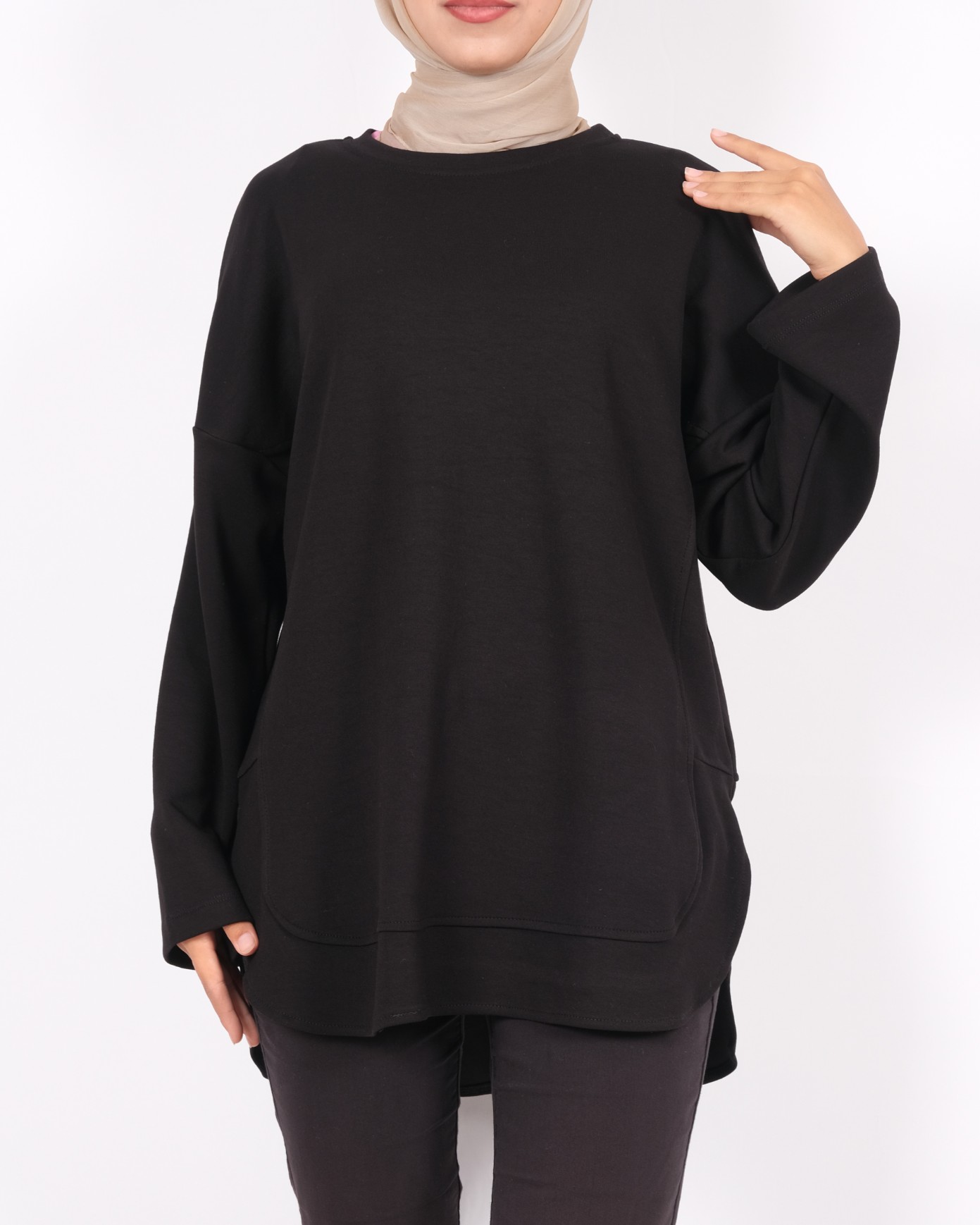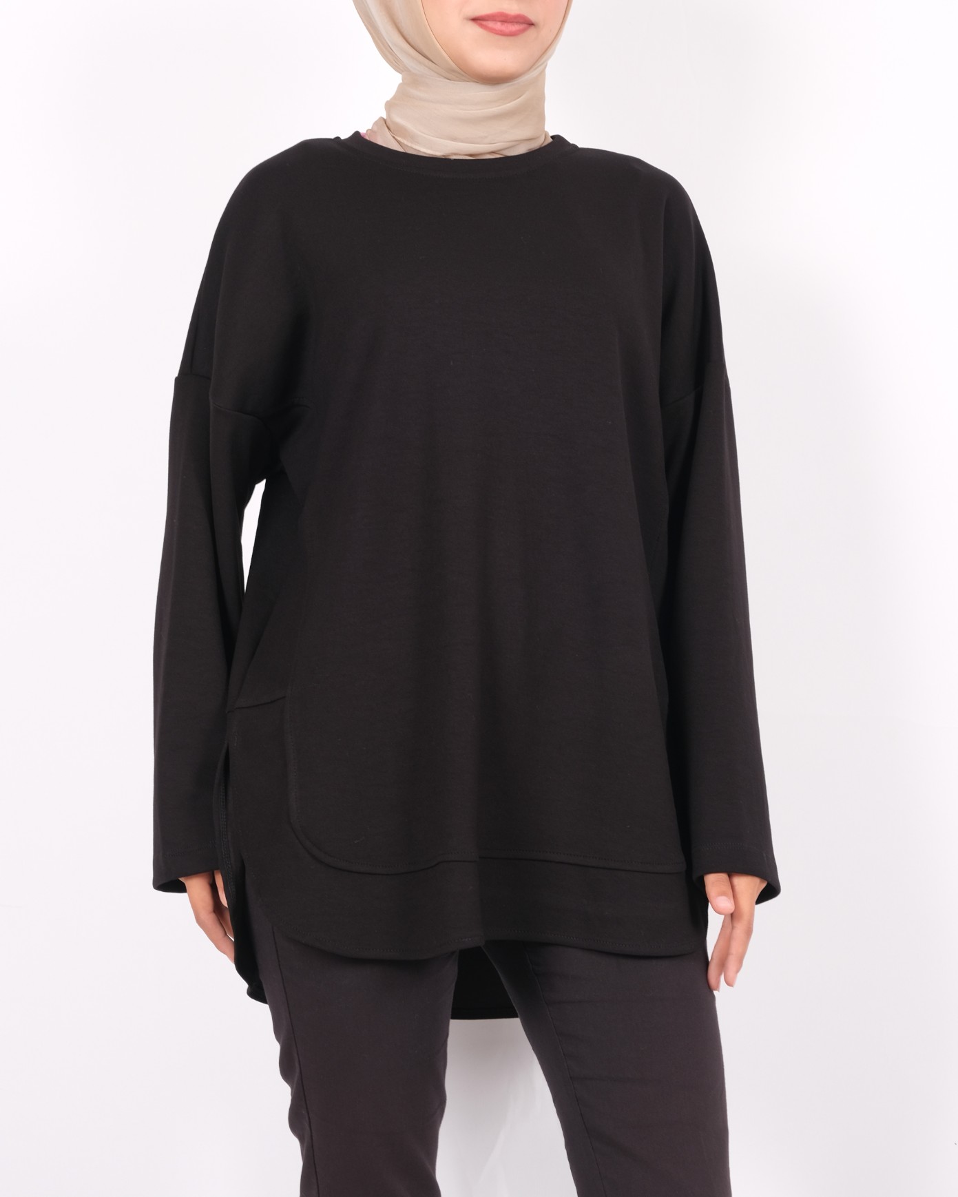 Eteği Oval Kesim Yırtmaçlı Oysho Sweat -Siyah-siyah