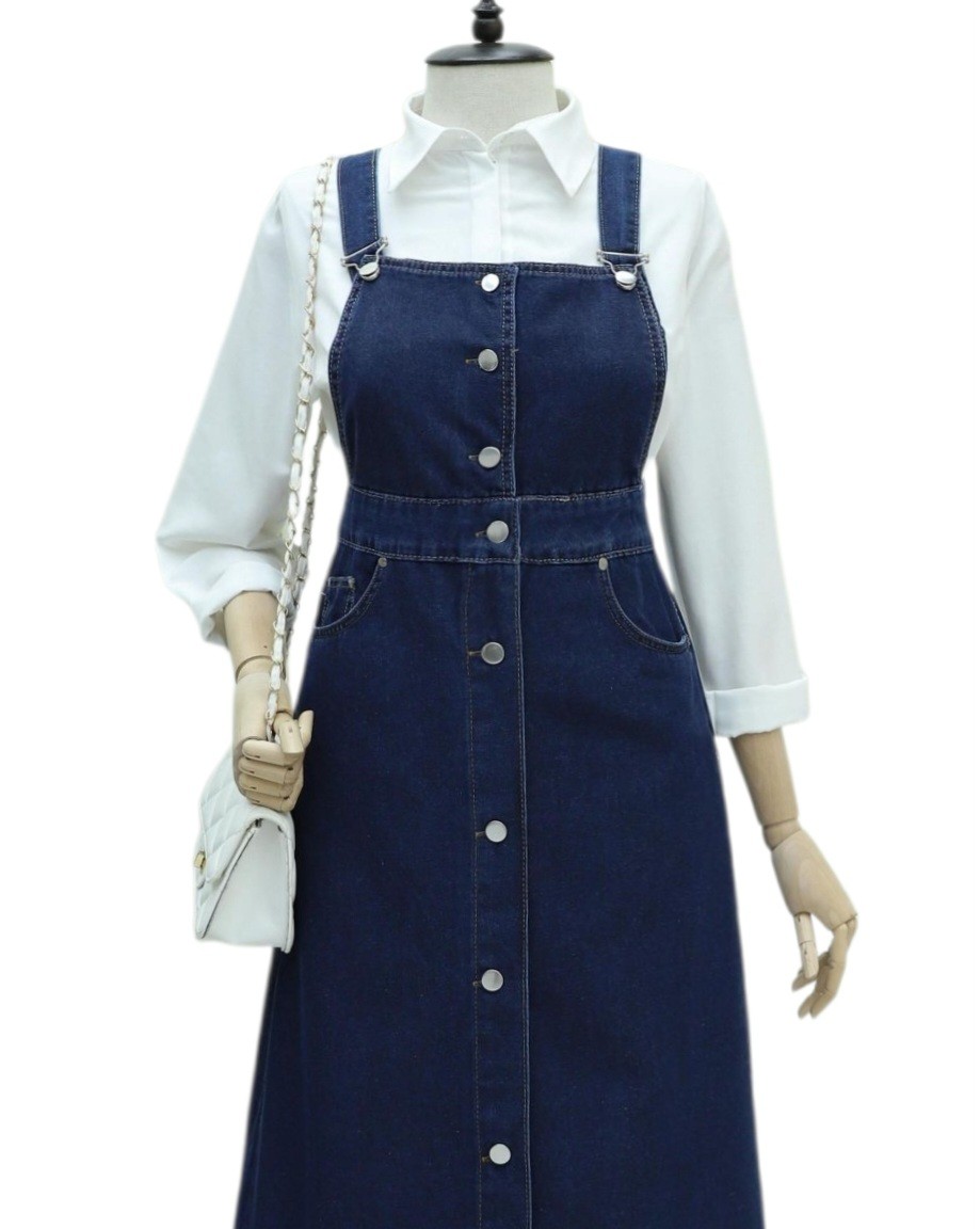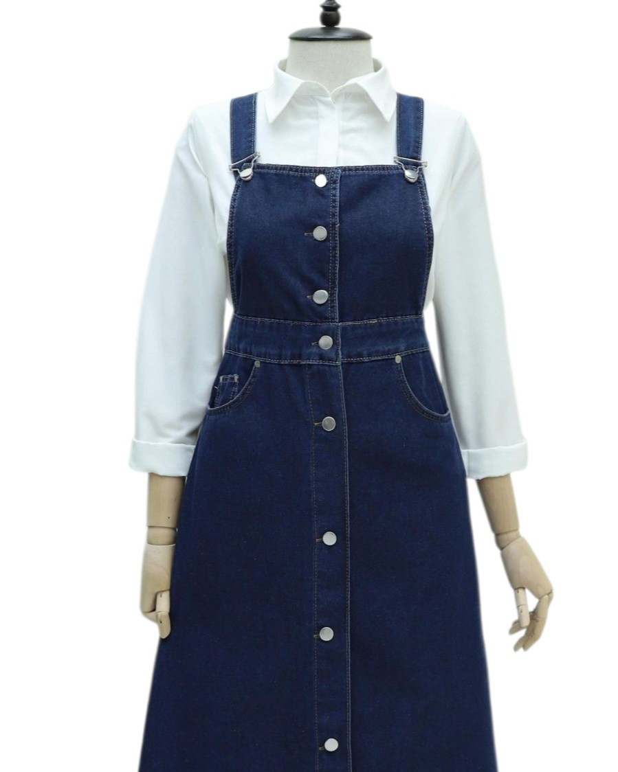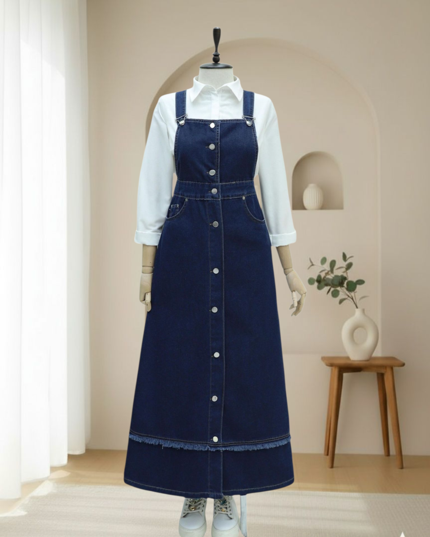 Eteği Püskül Detaylı Önü Düğmeli Cepli Kot Salopet -Laci-Lacivert