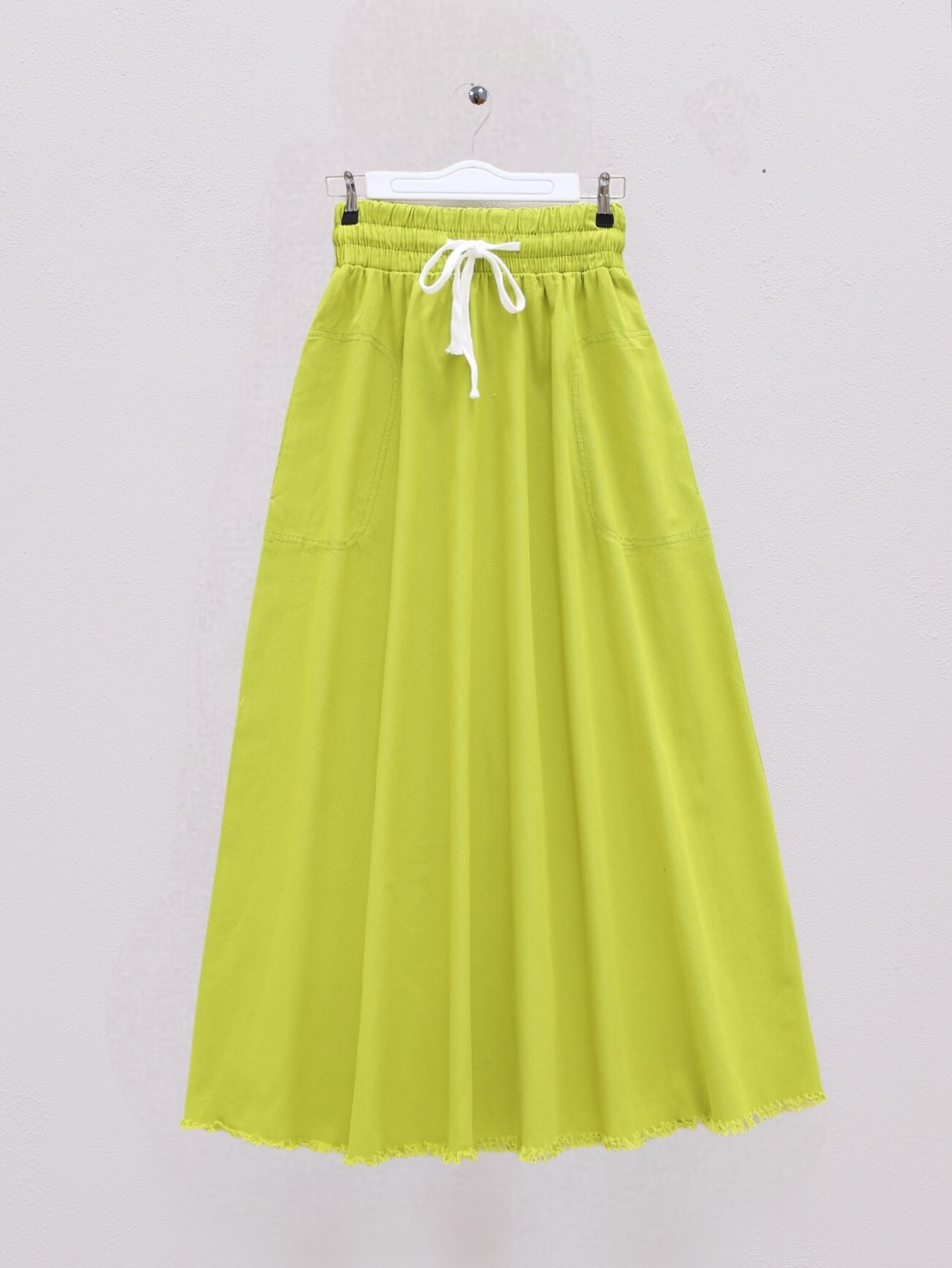 Eteği Püsküllü Cepli Gabardin Mevlana Etek -F.Yeşili-F.Yeşili