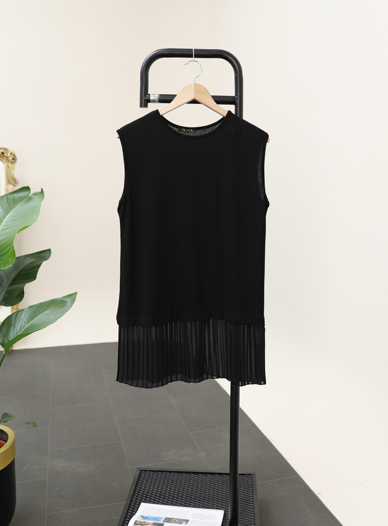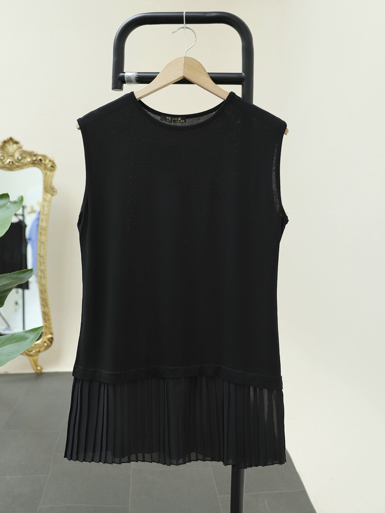 Eteği Tül Detaylı Pliseli Penye İçlik -Siyah-siyah