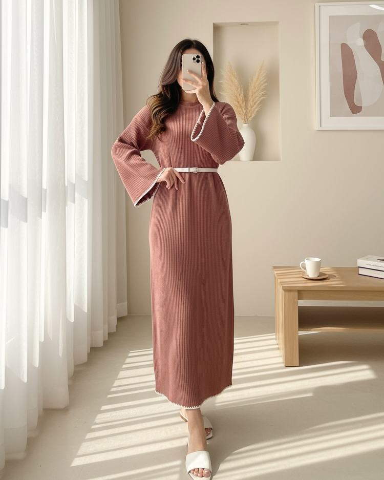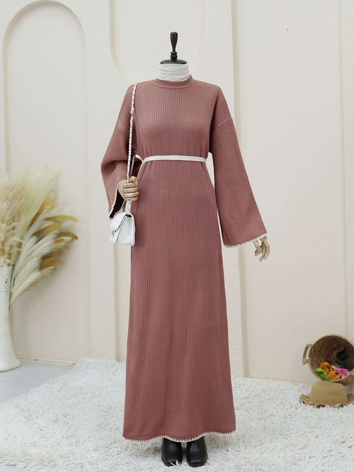 Etek Ucu ve Kolları Nakışlı Bağcıklı Triko Elbise -G.Kurusu-G.Kurusu