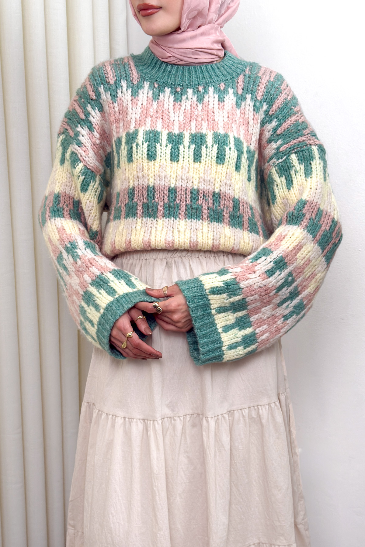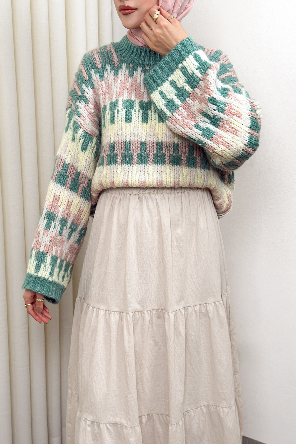 Etnik Desen Kazak 0688 - MİNT YEŞİLİ-mint yeşili