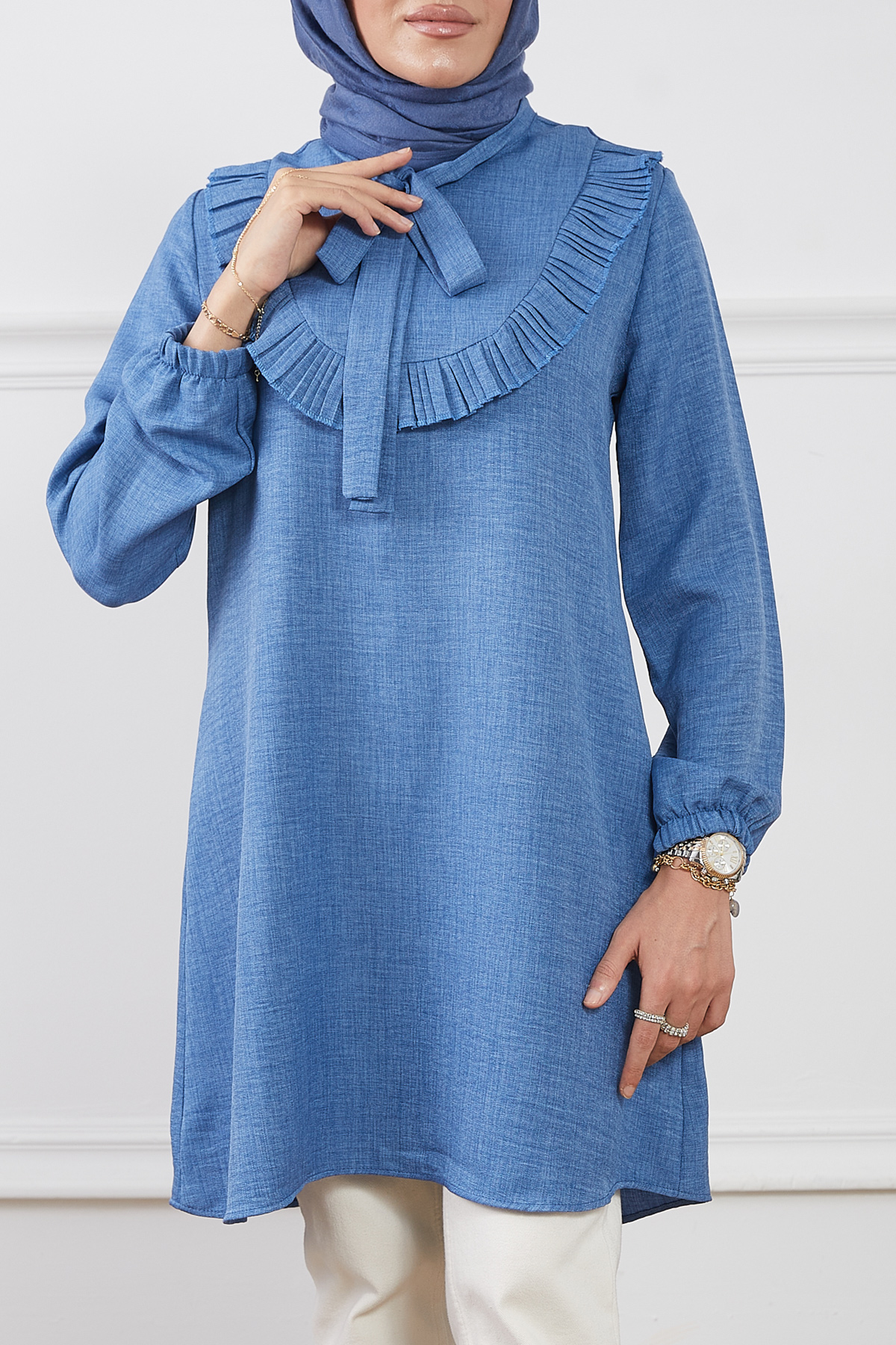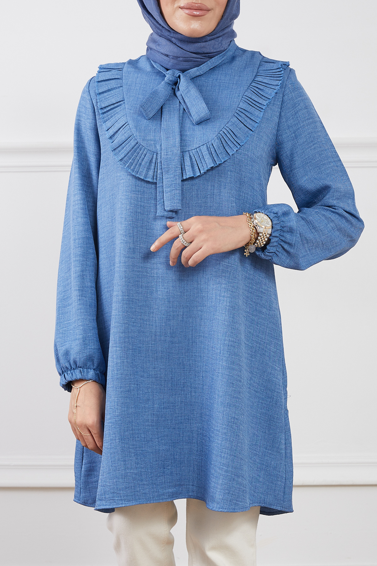 Fırfır Detaylı Tunik-Mavi
