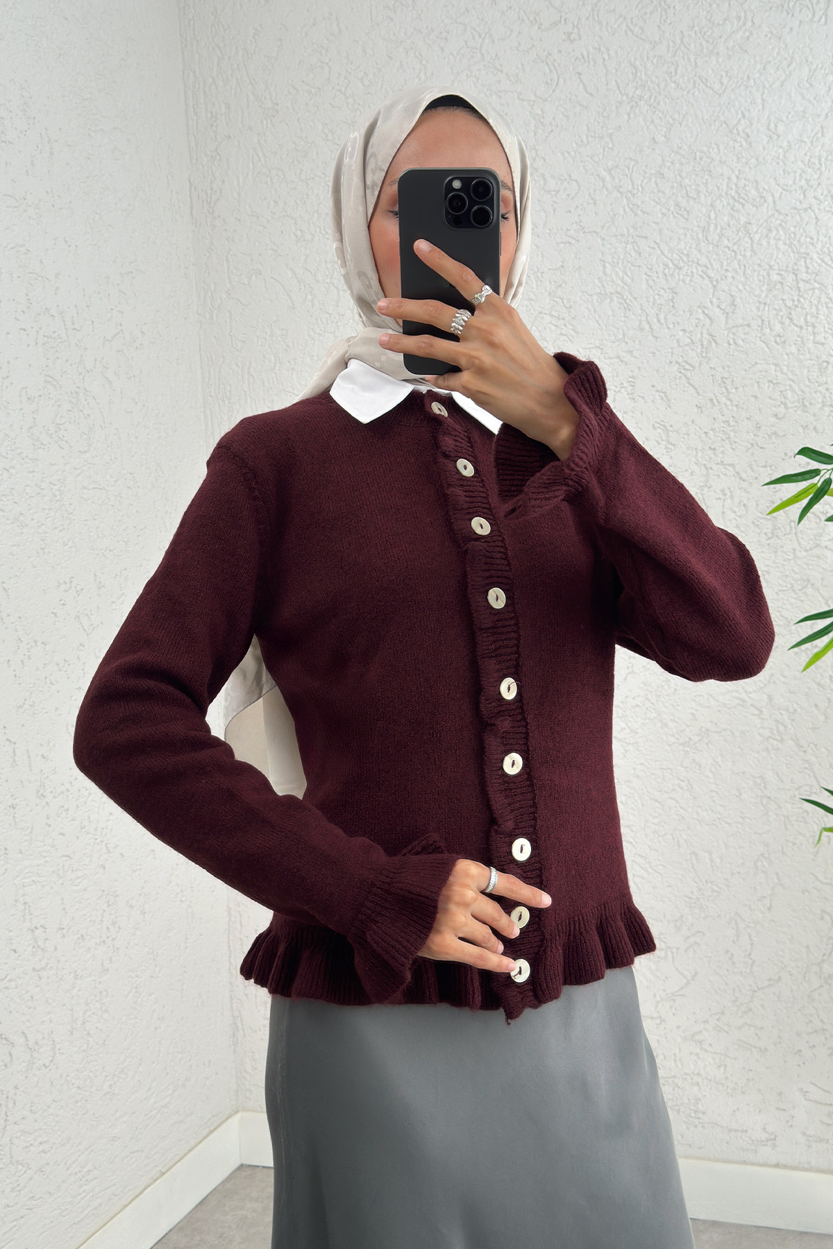Fırfırlı Triko Hırka 43478 - BORDO-Bordo