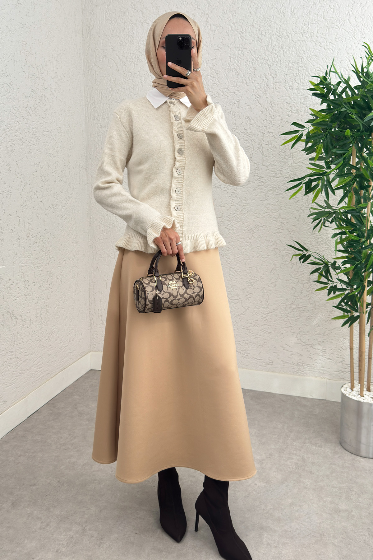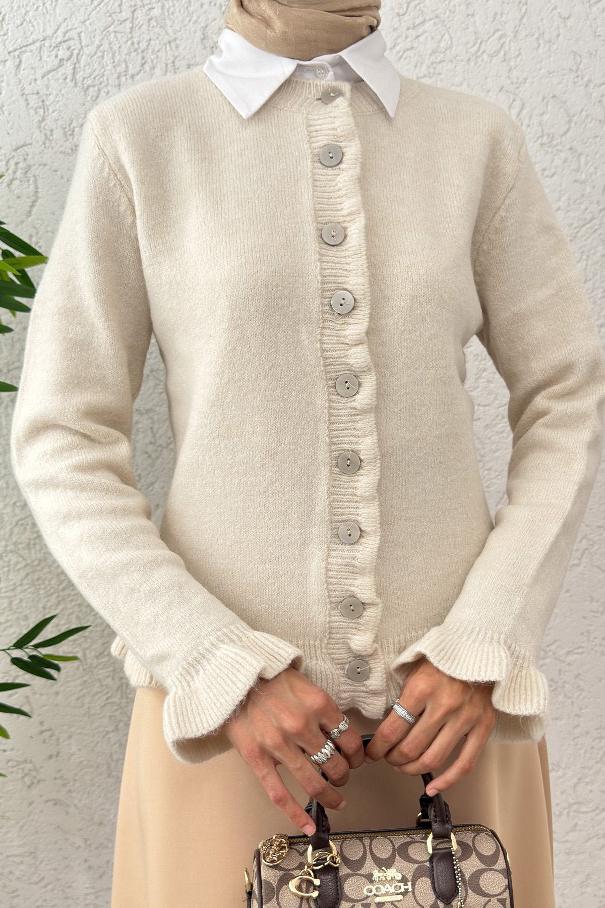 Fırfırlı Triko Hırka 43478 - TAŞ RENGİ-Taş